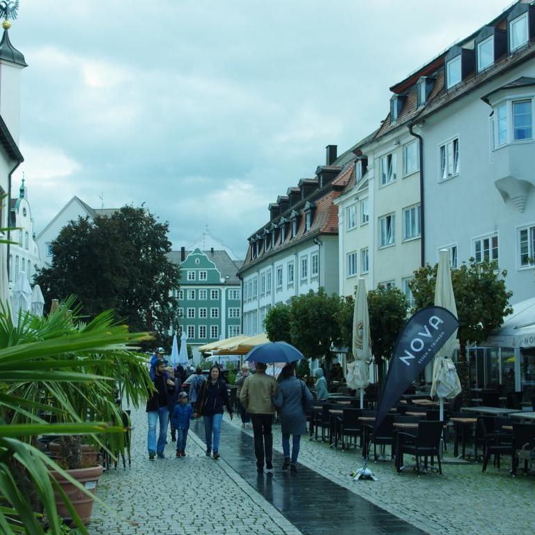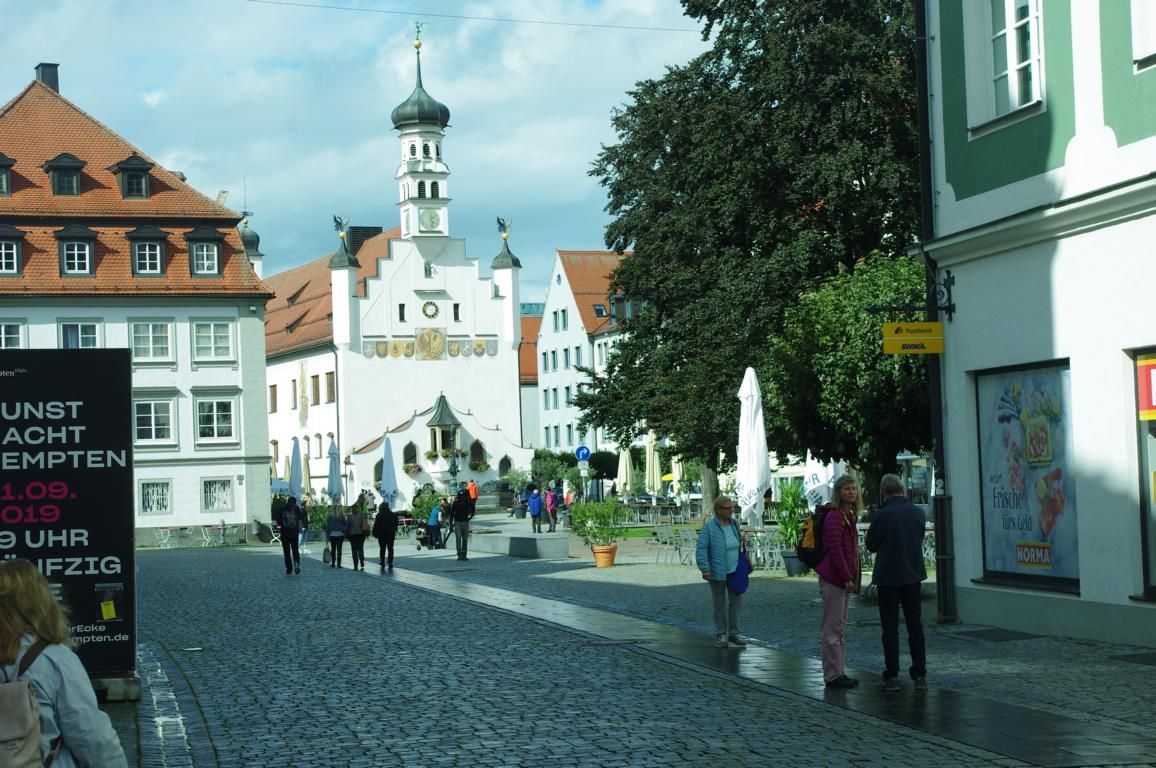 Nach dem Frühstück machten wir uns auf Richtung Kempten im Allgäu. Eine schöne Strecke mitten durch den Allgäu. Im Kaufhof, am Rande der Altstadt, haben wir geparkt.