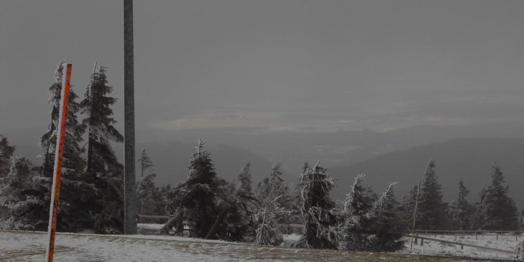 Oben angekommen war es sehr kalt und windig. Überall Meter hohe Schneeverwehungen und vereiste Schneehaufen. Leider erwischten wir einen der über 300 Nebeltage im Jahr. Aber hier und da tat sich eine Wolkenlücke auf die den Blick ins Tal freigab und man konnte erahnen welchen atemberaubenden Blick man hat, wenn hier mal kein Nebel herrscht. Nach etwa 2 Stunden ging‘s dann wieder zurück nach Drei Annen Hohne.