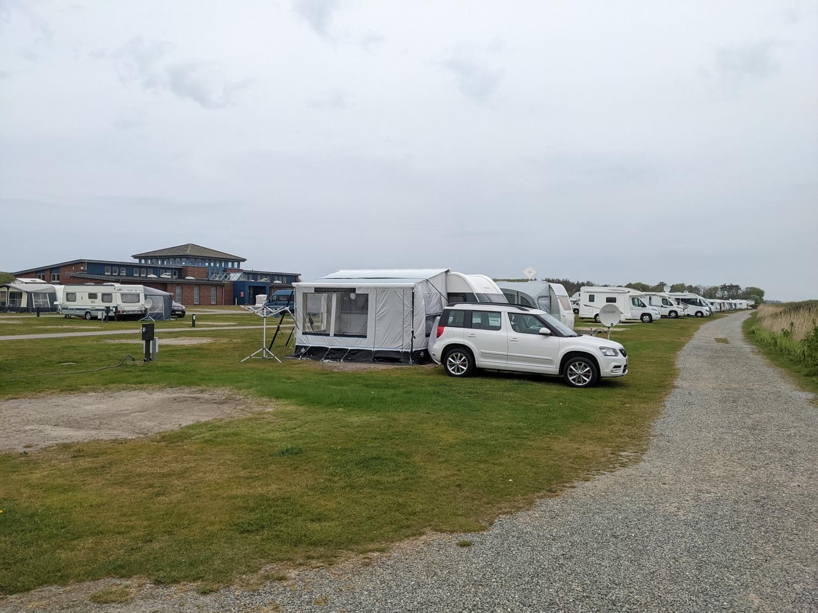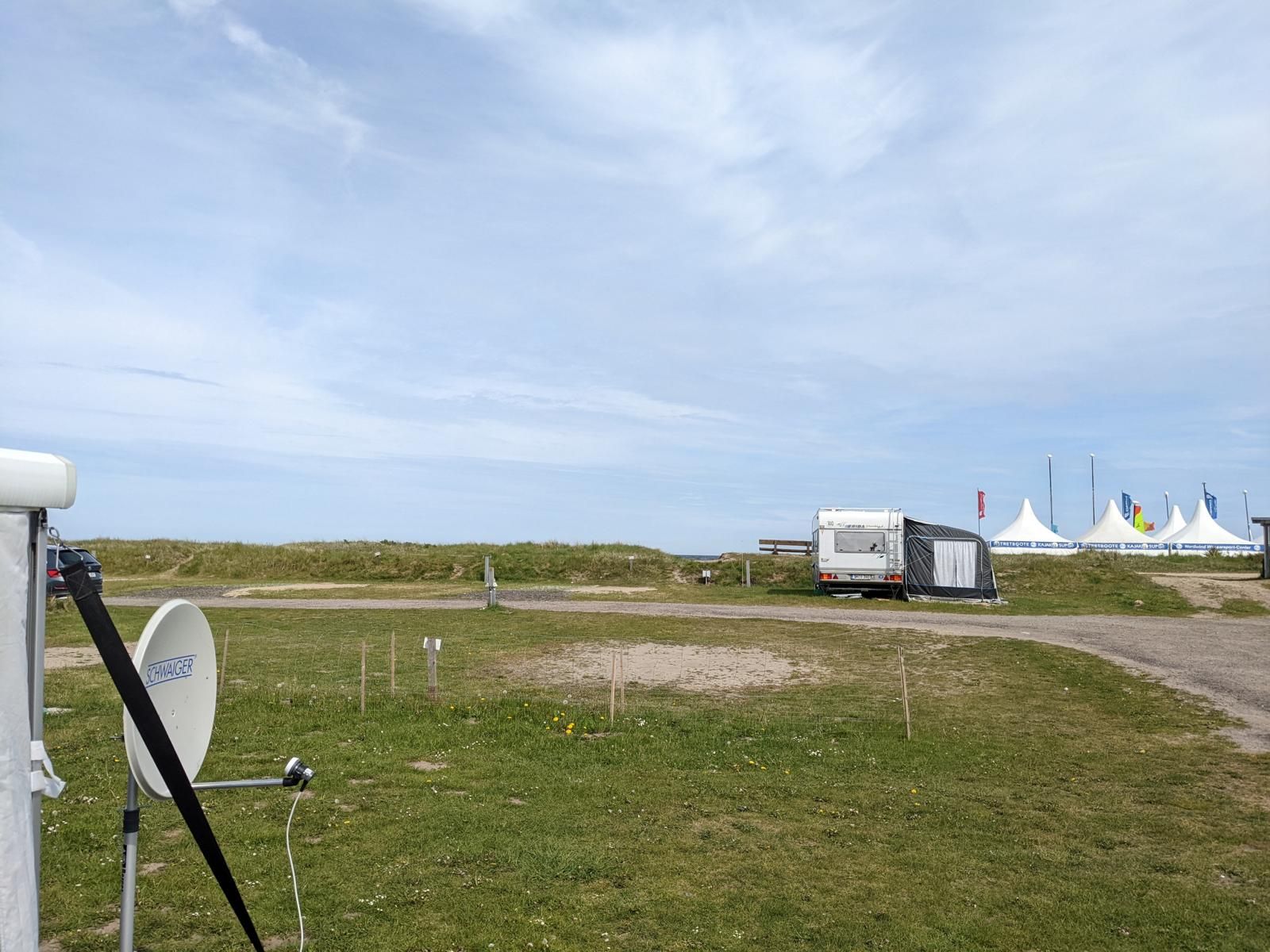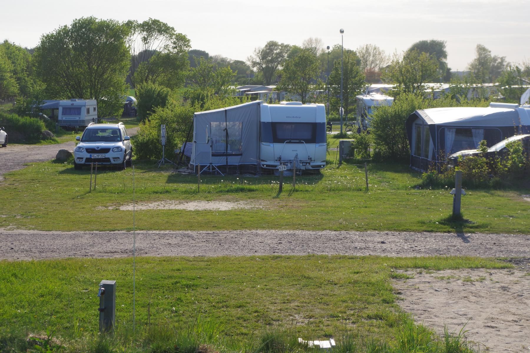 Nach dem wir vom Autozug gefahren sind, ging es weiter Richtung Ostsee nach Damp. Wir sind dann auch um kurz nach 12 Uhr ohne Stau auf dem Campingplatz in Schuby Strand angekommen. Es war auch hier etwas windig aber viel wärmer als auf Sylt. Der Campingplatz ist sehr einfach gehalten und wird überwiegend von Dauercampern geprägt. Die Sanitäranlagen sind sehr weit von den Stellplätzen entfernt. Der kleine Supermarkt am Platz ist recht gut sortiert hat aber zu dieser Jahreszeit nur vormittags geöffnet. Am Wochenenden auch Nachmittags. Die Plätze sind teils recht großzügig aber auch recht uneben und bei starkem Regen kann es zu Überschwemmungen kommen.