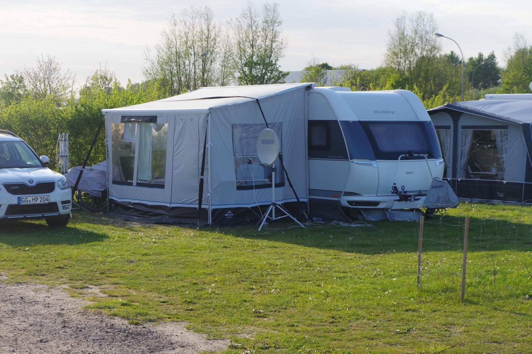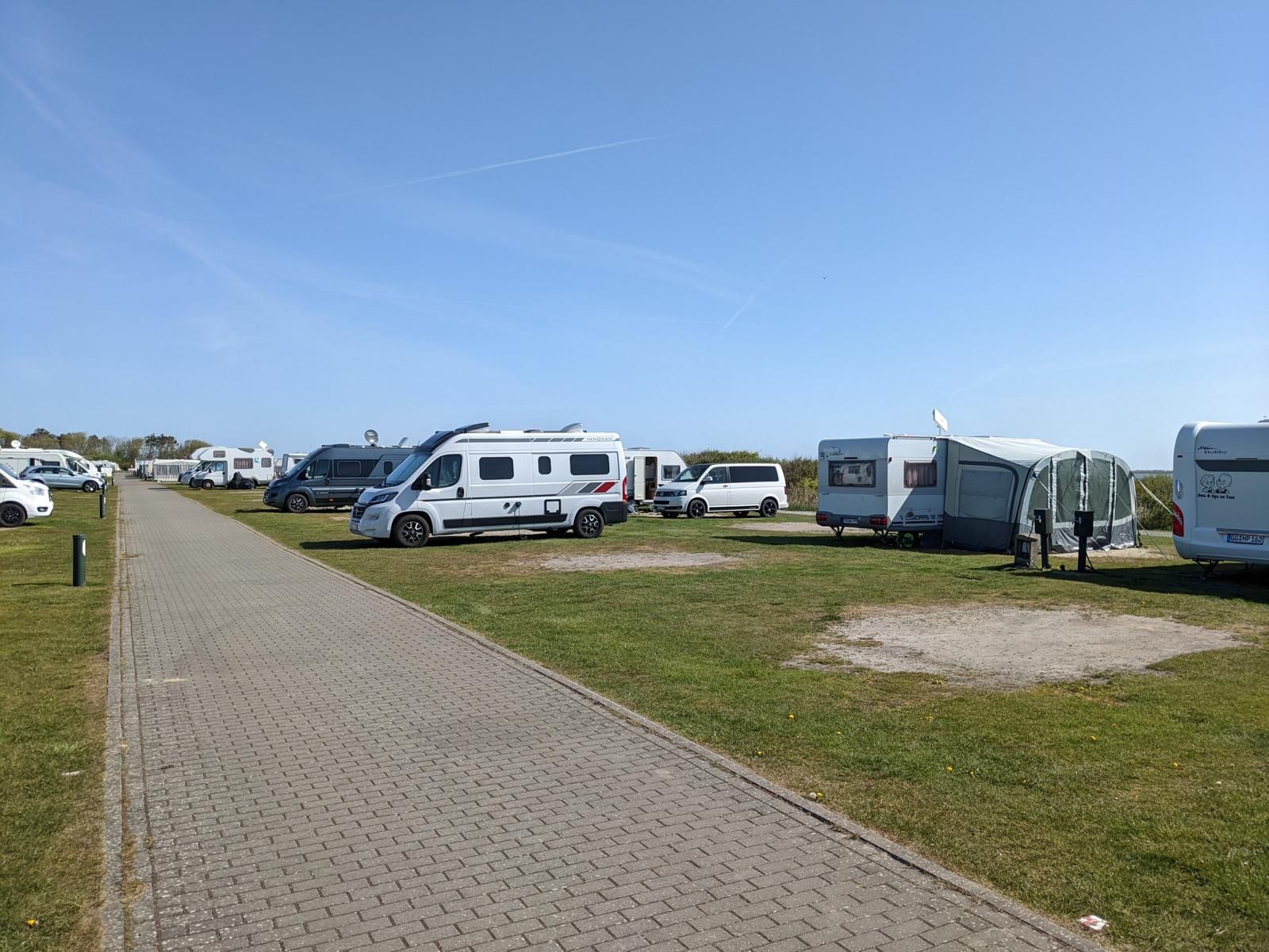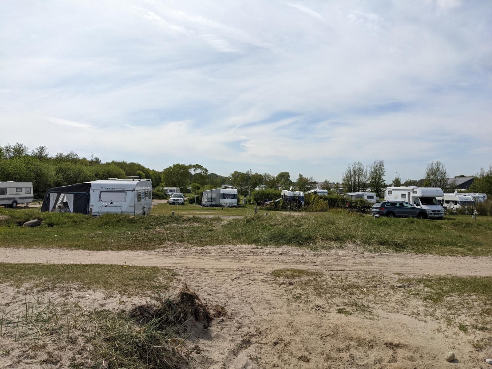 Nach dem wir vom Autozug gefahren sind, ging es weiter Richtung Ostsee nach Damp. Wir sind dann auch um kurz nach 12 Uhr ohne Stau auf dem Campingplatz in Schuby Strand angekommen. Es war auch hier etwas windig aber viel wärmer als auf Sylt. Der Campingplatz ist sehr einfach gehalten und wird überwiegend von Dauercampern geprägt. Die Sanitäranlagen sind sehr weit von den Stellplätzen entfernt. Der kleine Supermarkt am Platz ist recht gut sortiert hat aber zu dieser Jahreszeit nur vormittags geöffnet. Am Wochenenden auch Nachmittags. Die Plätze sind teils recht großzügig aber auch recht uneben und bei starkem Regen kann es zu Überschwemmungen kommen.