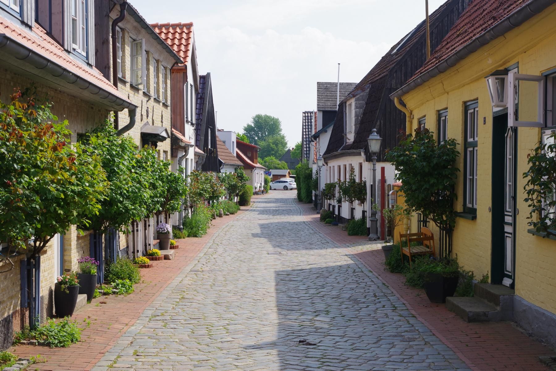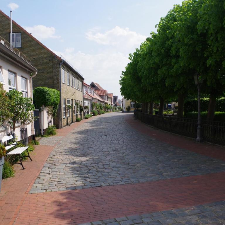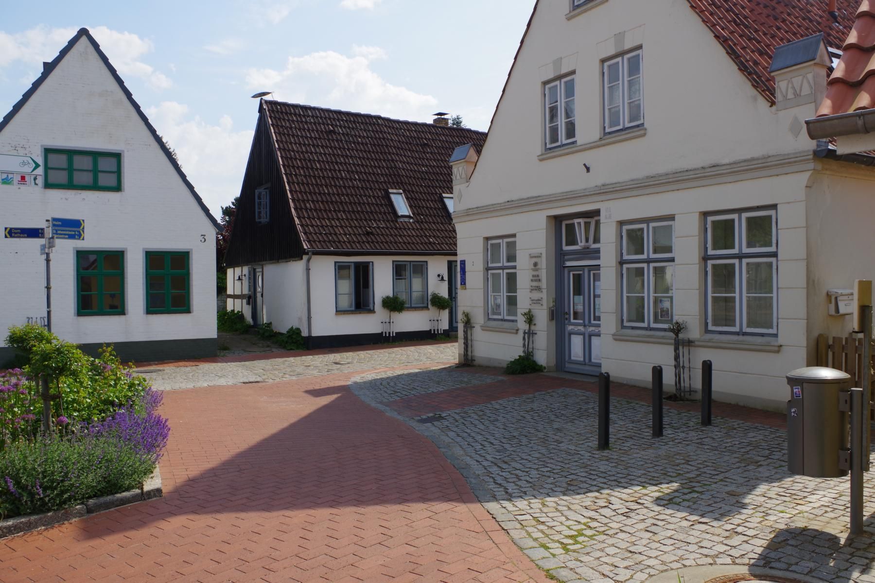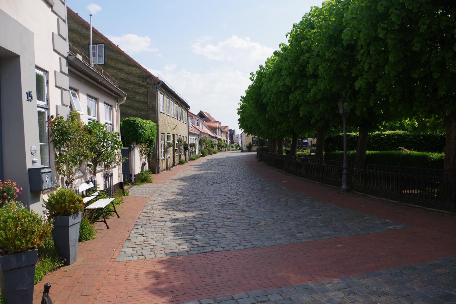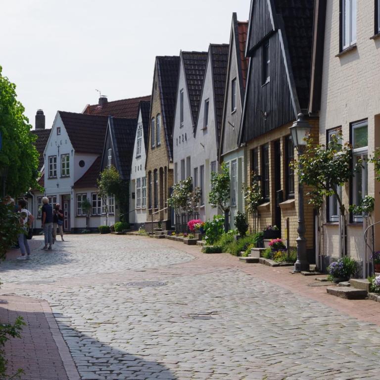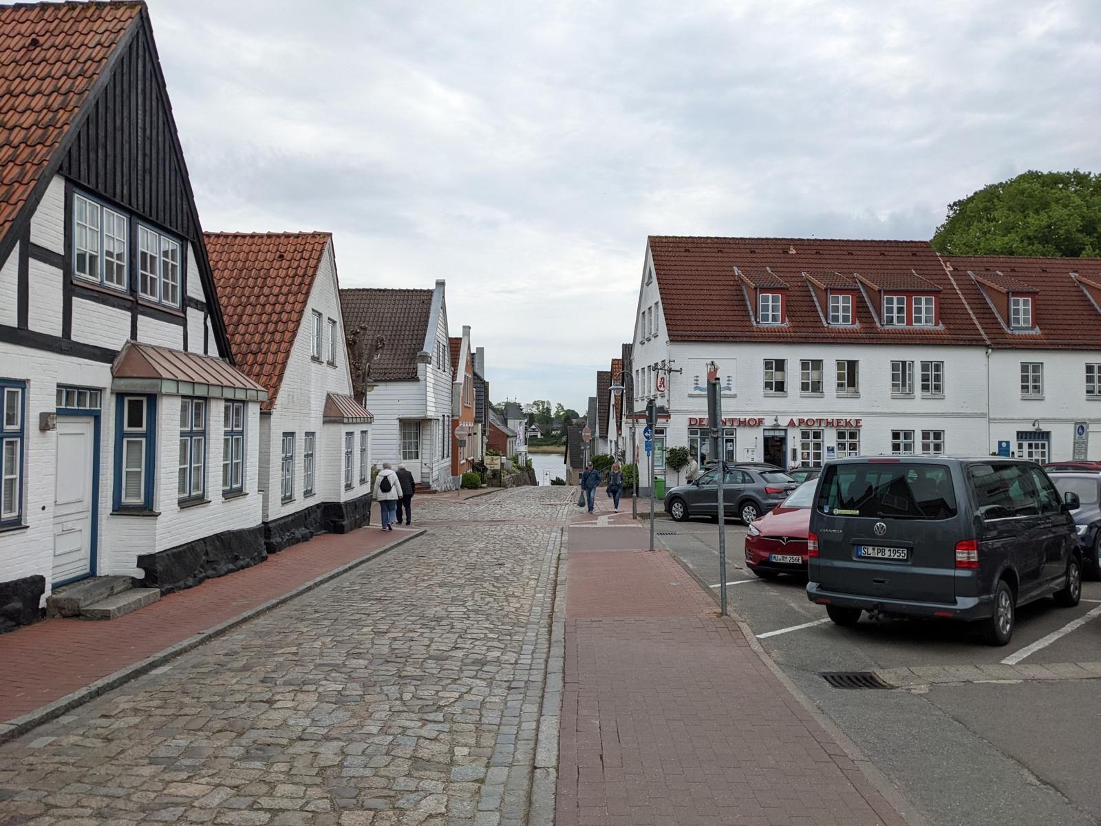 Bei bestem Wetter machten wir uns nach dem Frühstück auf nach Schleswig. Der Stadtteil Holm liegt direkt am Wasser am Rande von Schleswig. Eine wunderschöne kleine Fischersiedlung. In der Dorfmitte befindet sich eine kleine Kirche mit Friedhof. Hier werden heute noch die Einheimischen beerdigt. Parken kann man, wenn man einen Parkplatz findet, kostenlos am Hafen. Von hier aus sind es nur ca. 10 Minuten Fußweg nach Holm.