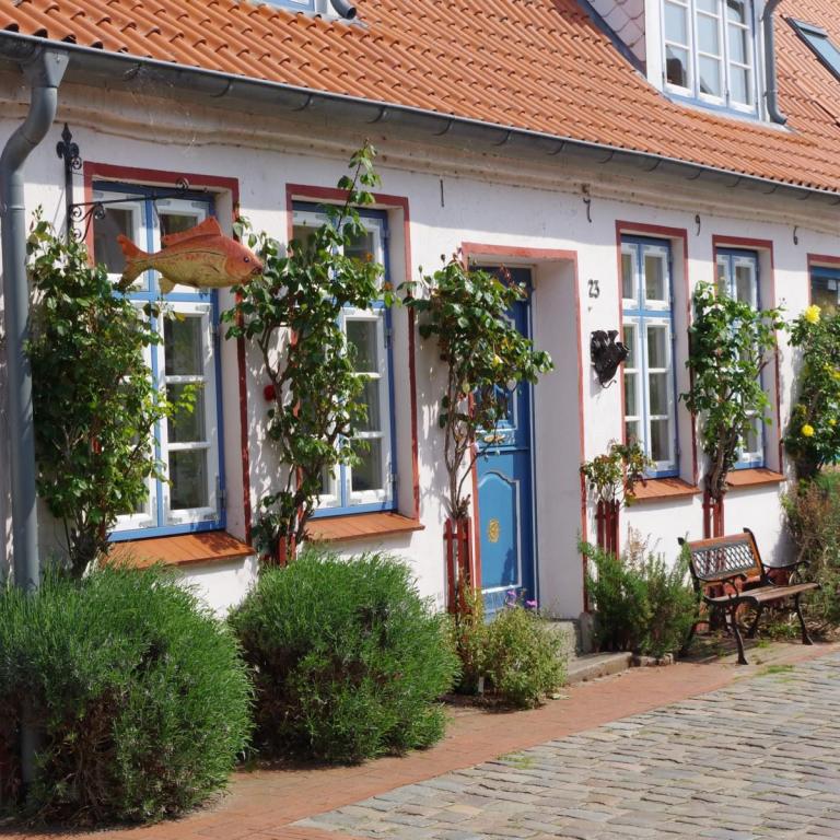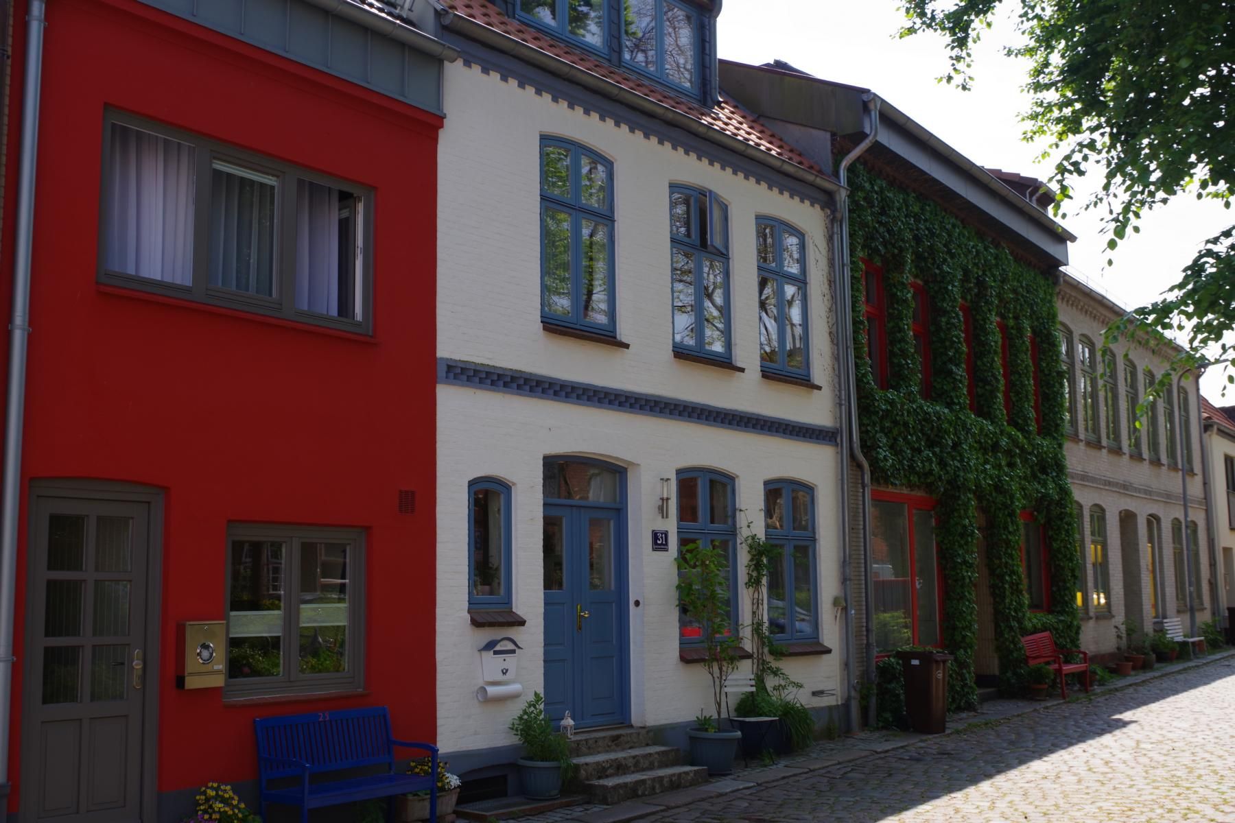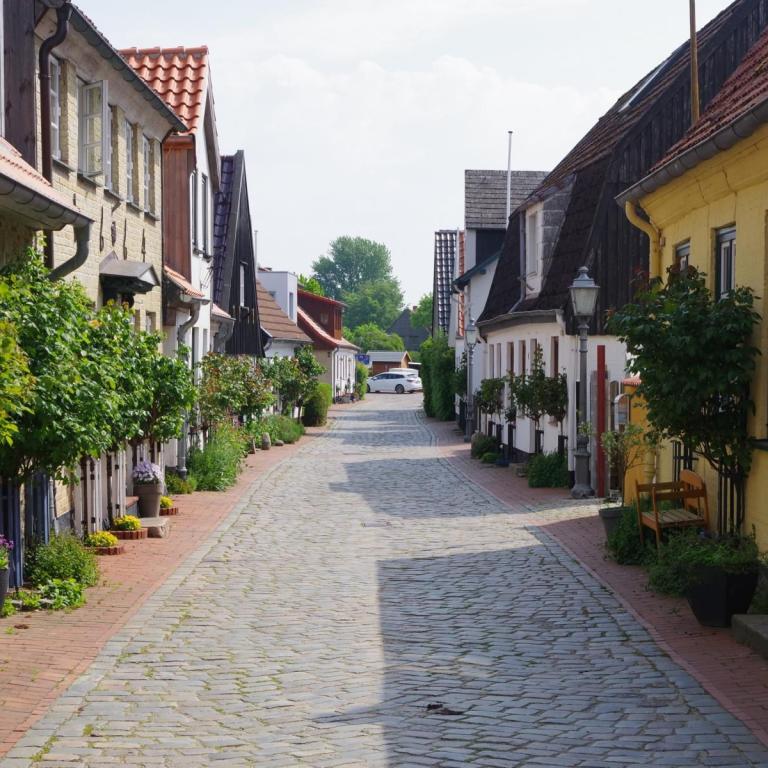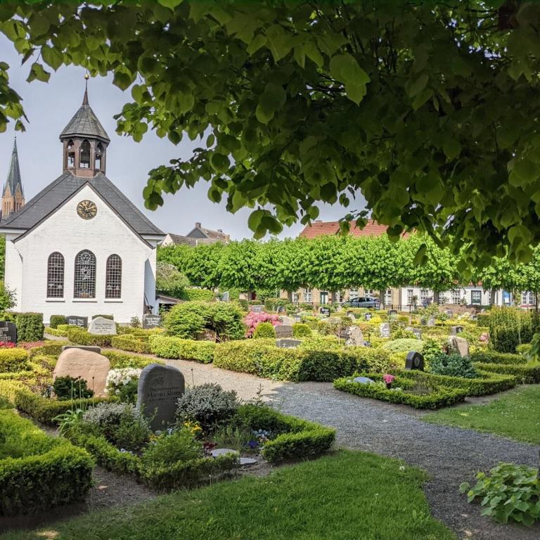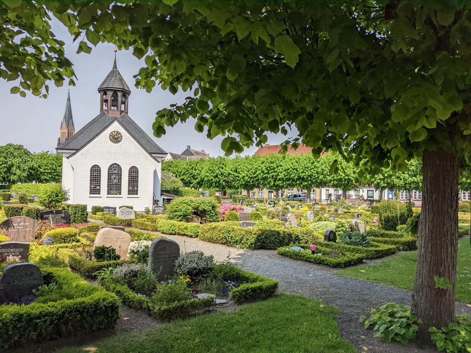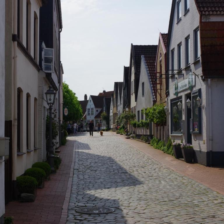 Bei bestem Wetter machten wir uns nach dem Frühstück auf nach Schleswig. Der Stadtteil Holm liegt direkt am Wasser am Rande von Schleswig. Eine wunderschöne kleine Fischersiedlung. In der Dorfmitte befindet sich eine kleine Kirche mit Friedhof. Hier werden heute noch die Einheimischen beerdigt. Parken kann man, wenn man einen Parkplatz findet, kostenlos am Hafen. Von hier aus sind es nur ca. 10 Minuten Fußweg nach Holm.