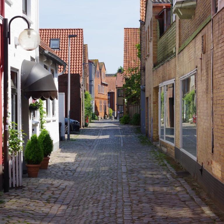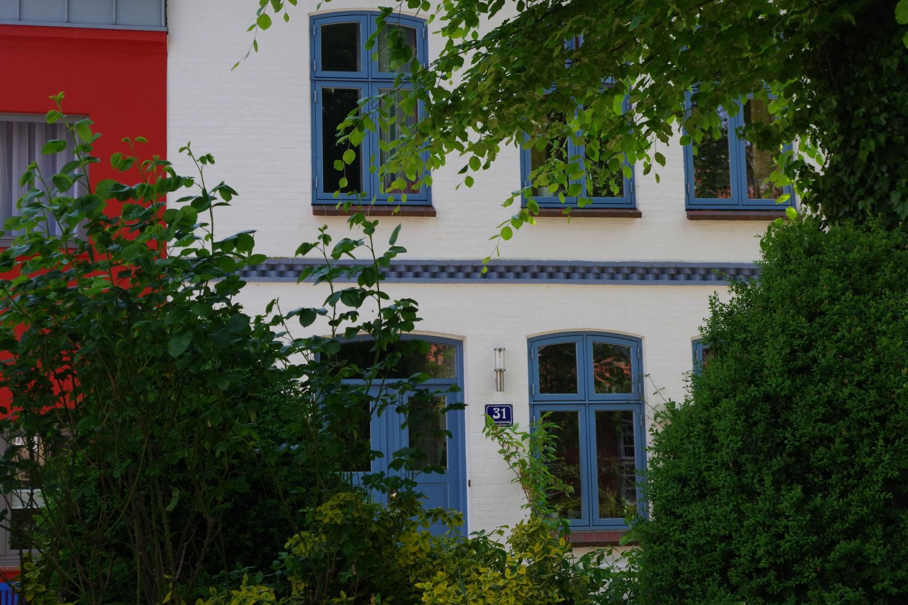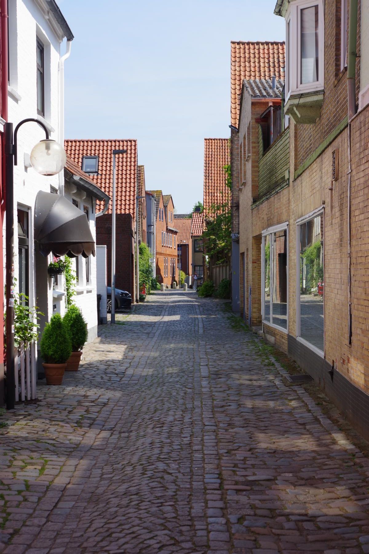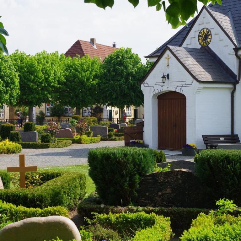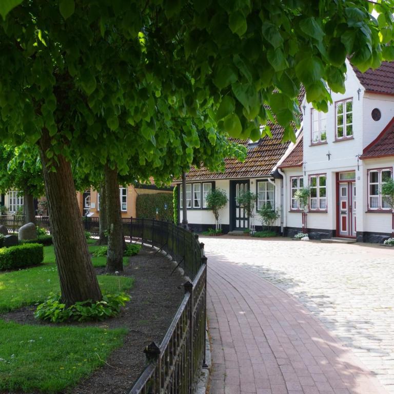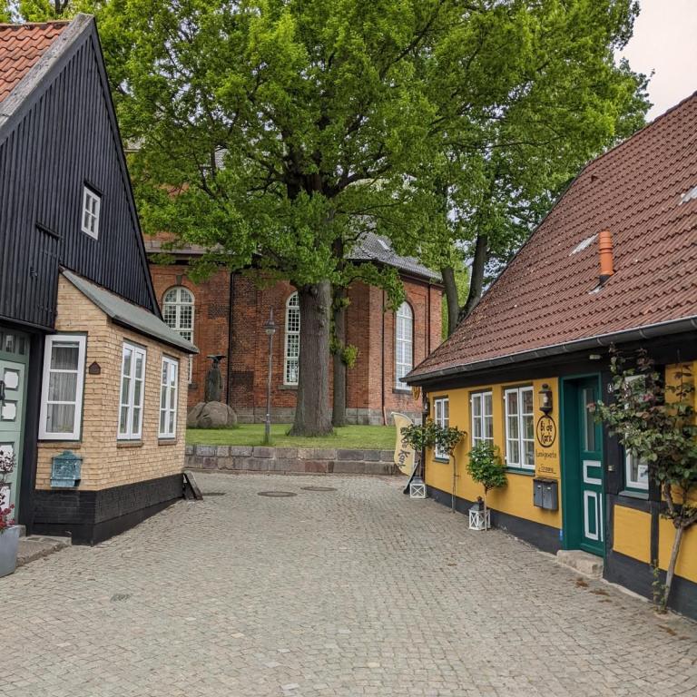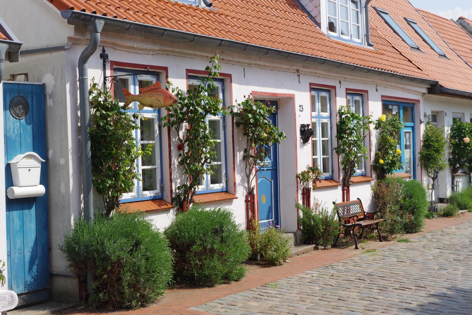 Bei bestem Wetter machten wir uns nach dem Frühstück auf nach Schleswig. Der Stadtteil Holm liegt direkt am Wasser am Rande von Schleswig. Eine wunderschöne kleine Fischersiedlung. In der Dorfmitte befindet sich eine kleine Kirche mit Friedhof. Hier werden heute noch die Einheimischen beerdigt. Parken kann man, wenn man einen Parkplatz findet, kostenlos am Hafen. Von hier aus sind es nur ca. 10 Minuten Fußweg nach Holm.