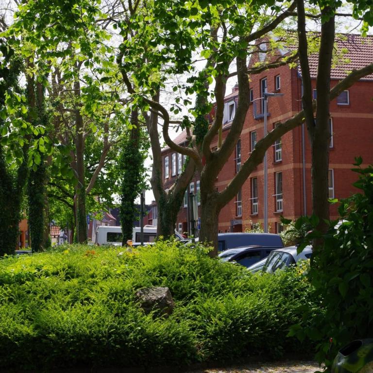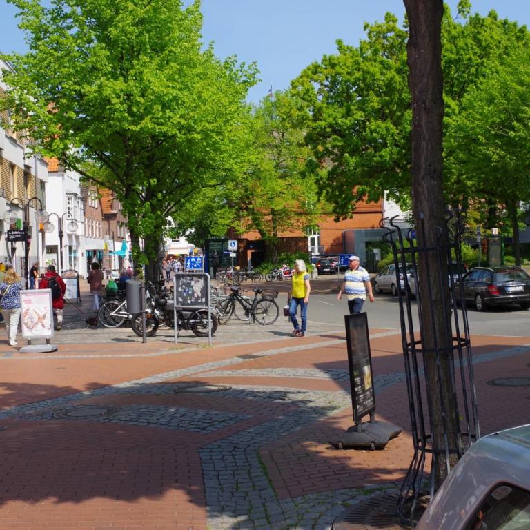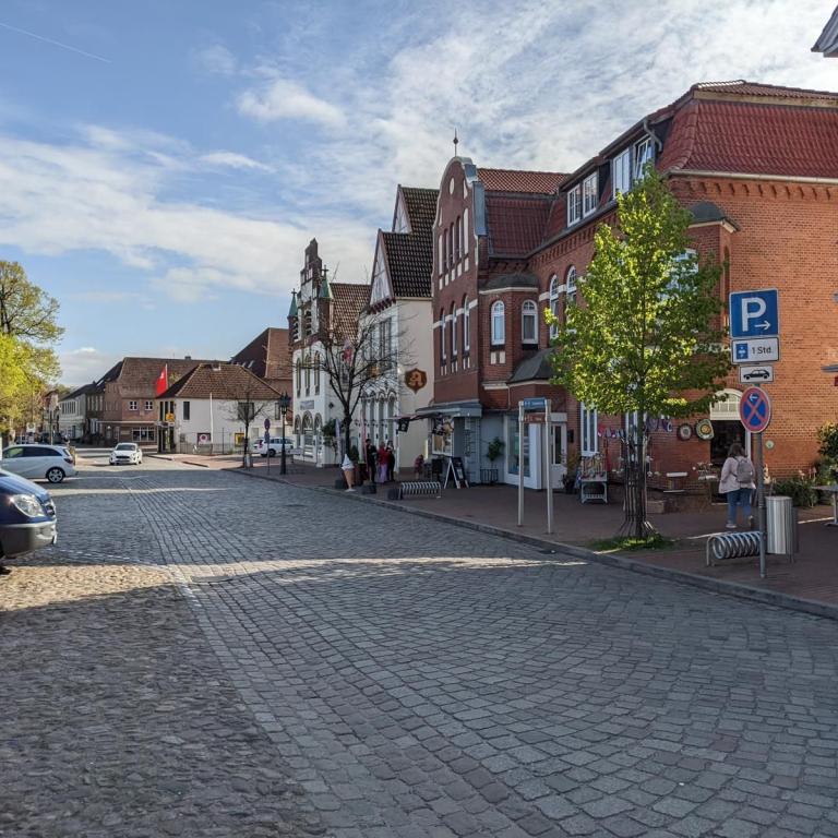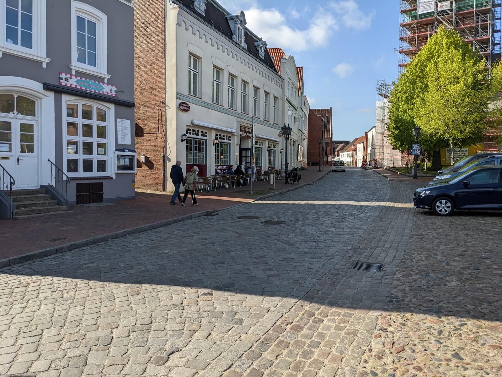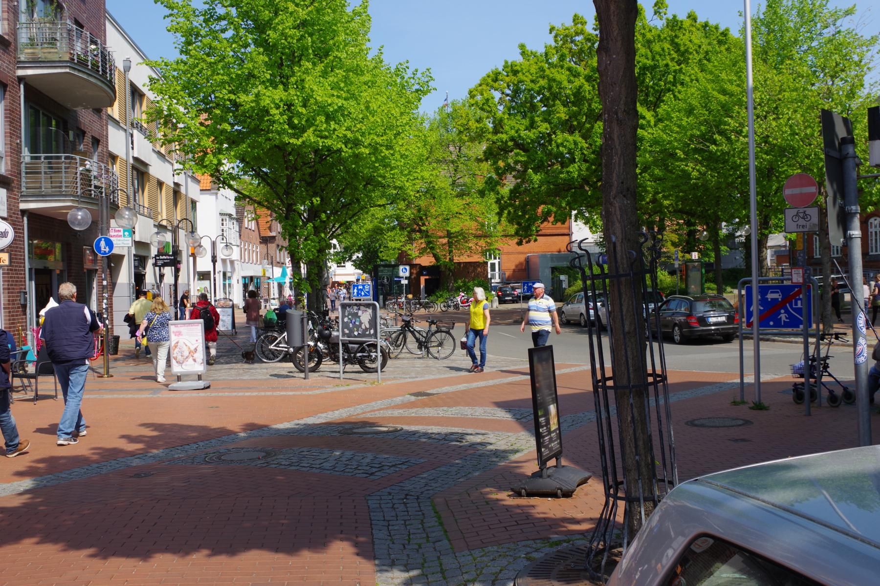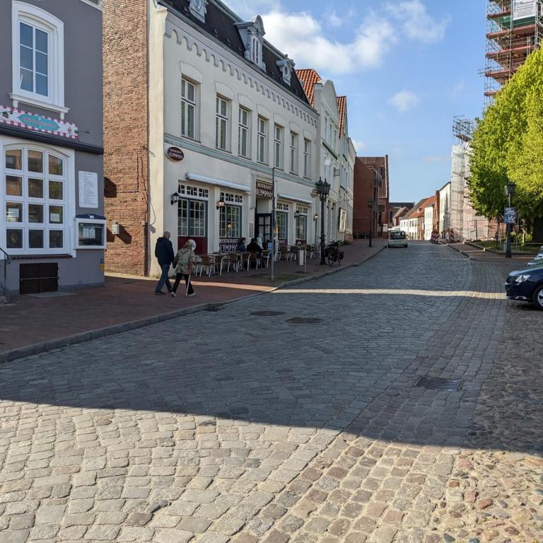 Die Stadtmitte von Schleswig gibt nicht viel her. Fußgängerzone mit vielen Geschäften und Cafés aber keine schönen Häuser. In der Stadtmitte unmittelbar an der Fußgängerzone gibt es ein großes kostenloses Parkhaus. Hier darf man 3 Stunden mit Parkscheibe parken.
