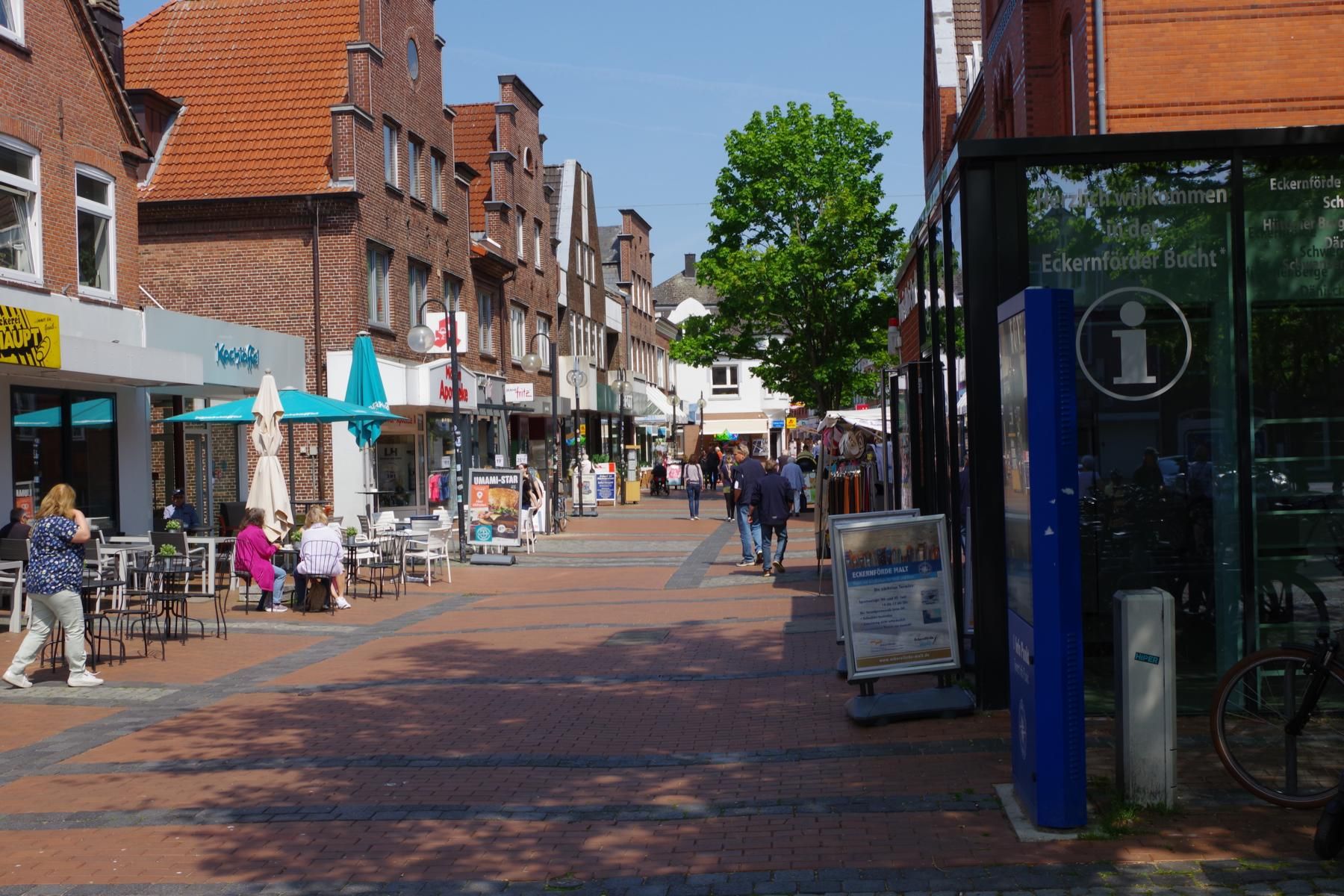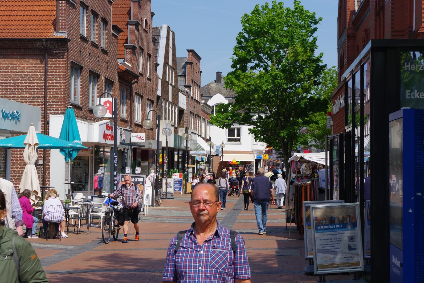 Heute sind wir bei 25 Grad und schönstem Wetter nach Eckernförde gefahren. Am Großparkplatz am Hafen bekommt man immer einen Platz. Hier kann man für wenig Geld auch länger Parken. Die Fußgängerzone in der Altstadt ist vom Parkplatz aus in ca. 5 Minuten zu Fuß erreichbar. Am Anfang der Fußgängerzone befindet sich auch eine öffentliche Toilette.