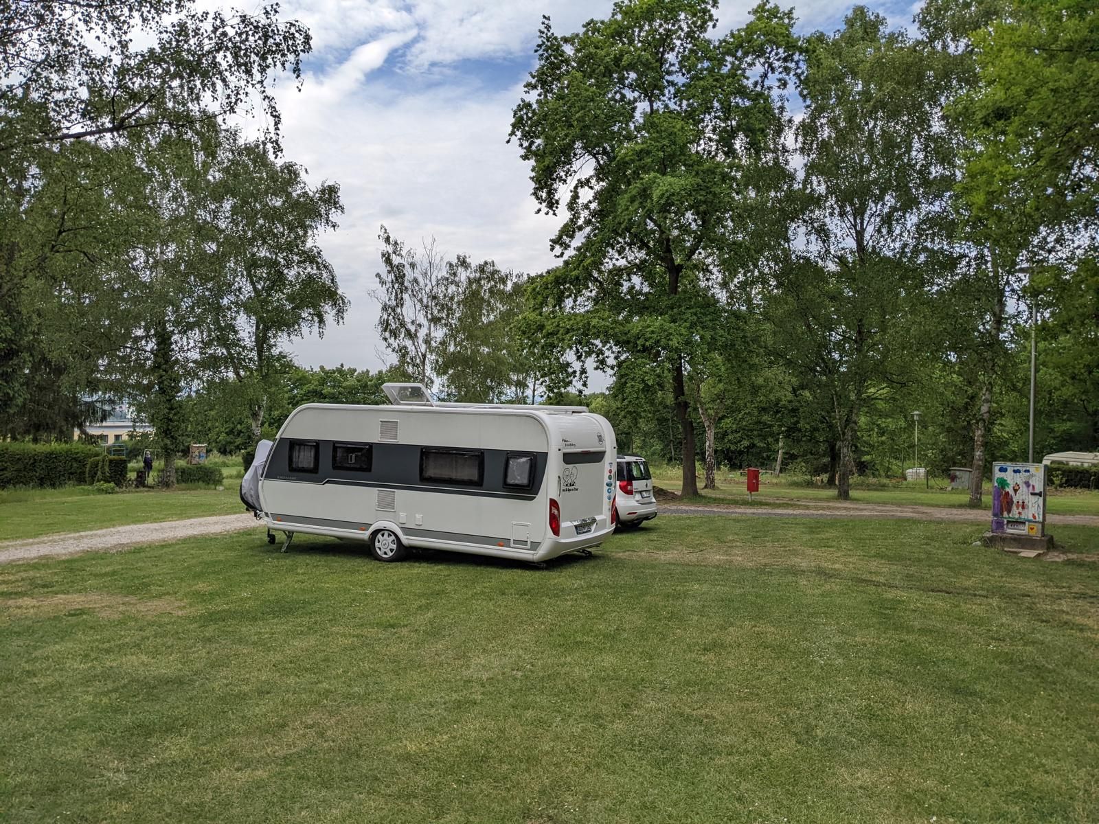 Abfahrt von zu Hause gegen 09:30. Wir sind gut durch gekommen. Erst kurz vor unserem 1. Übernachtungsplatz noch ein kurzer Stau vor einer der endlosen Baustellen auf der A7 . Der Campingplatz Aller Leine Tal war fast leer. Ein netter Mitarbeiter des Platzes hat uns gleich in Empfang genommen da die Rezeption noch geschlossen war, sollten wir einfach einen Platz suchen und uns später anmelden. Also den Wohnwagen abgestellt und noch schnell im nahegelegenen Autohof tanken gefahren. Billiger als auf der Autobahn.