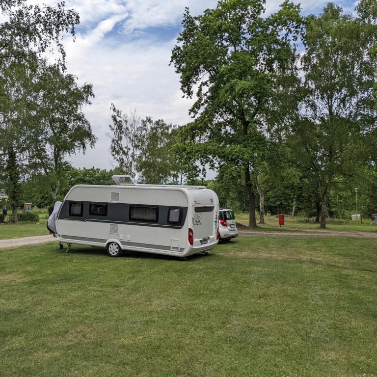Der Campingplatz liegt auf einem Berg mit Blick auf die Seenplatte. Leider hört man die A7 bei Westwind sehr laut. Viele Plätze sind extrem schief. Es gibt auch für Wohnmobile etwas geradere Plätze. Brötchenservice ist vorhanden und auch ein echt gutes Lokal wo man auch frühstücken kann. 29€ pro Nacht ist Grenzwertig für einen solchen Platz aber noch akzeptabel.