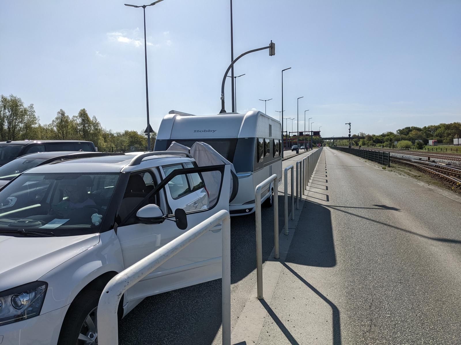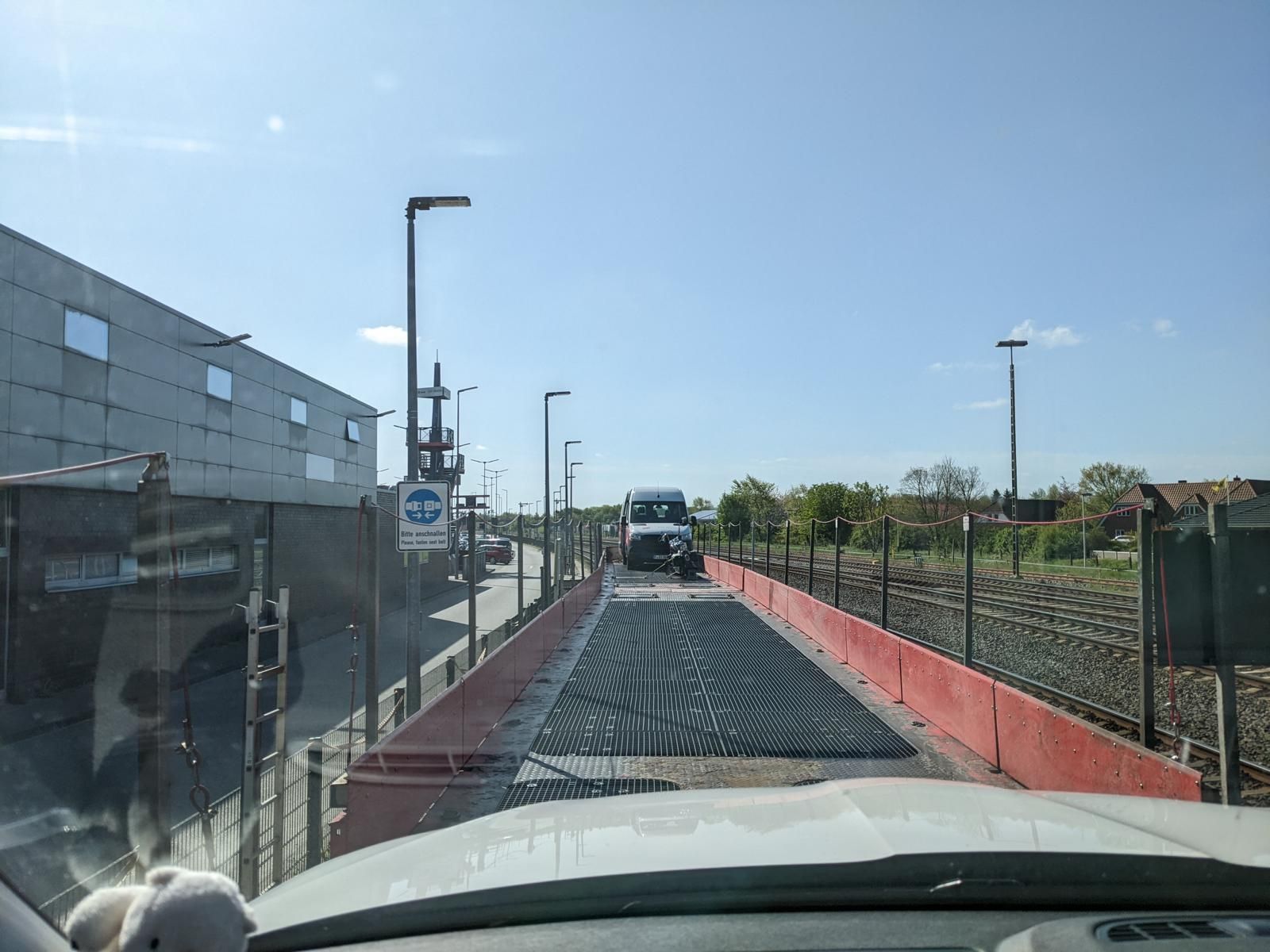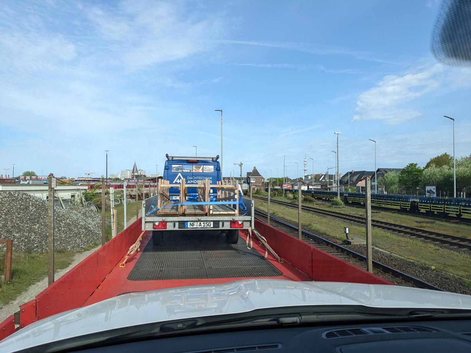 Dann ging es auch gleich durch die Schranke in die Warteposition und bereits 20 Minuten später konnten wir als einziger Camper auf den Niederbordwagen der DB auffahren und waren dann fast 1.5 Stunden früher auf der Insel. Alles ging echt einfach und entspannt mit dem Gespann auf den Zug zu fahren und auch in Westerland wieder runter.