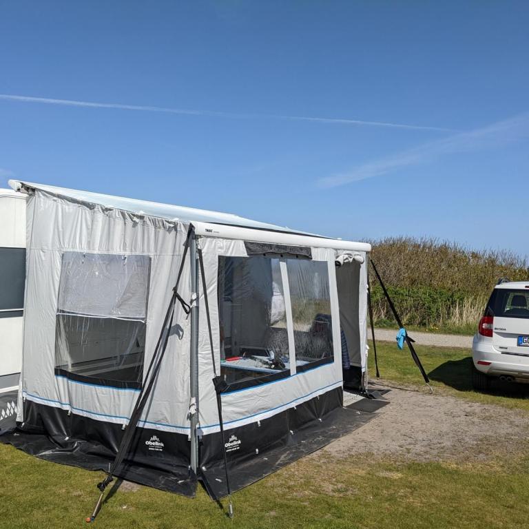 Als wir vom Zug in Westerland runtergefahren sind, machten wir uns auf zu unserem ca. 5 km entfernten Campingplatz in Rantum. Der Campingplatz liegt zwischen der Straße nach Rantum und dem Naturschutzgebiet Rantumer- Becken. Tagsüber hört man die Straße leicht. Nachts ist es sehr ruhig. Die Sanitäranlagen sind 1a. Zu dieser Jahreszeit ist hier kaum etwas los. Der Platz ist vielleicht zu 1/3 belegt.