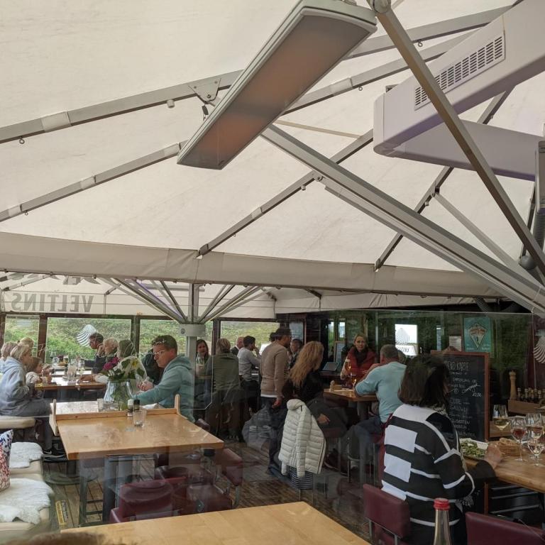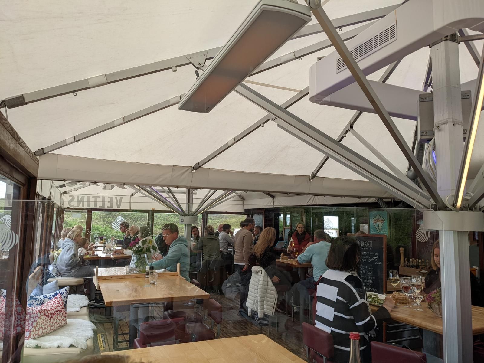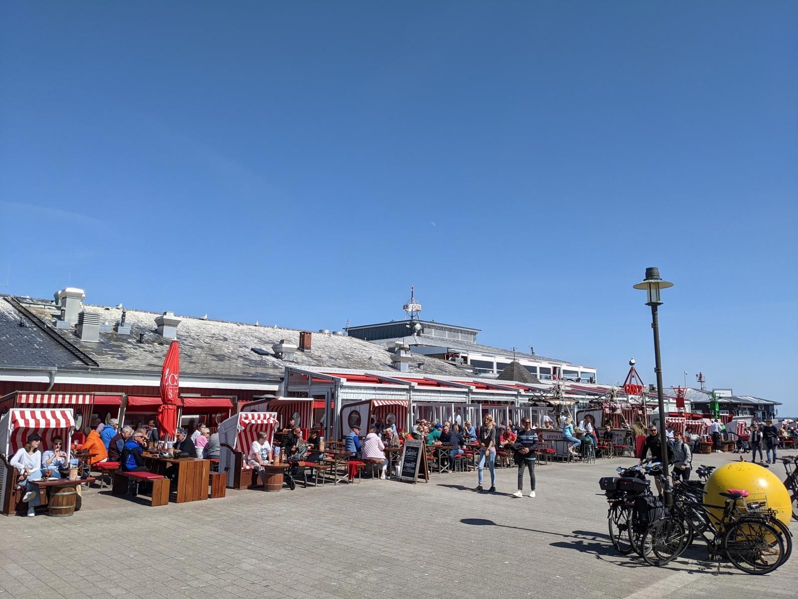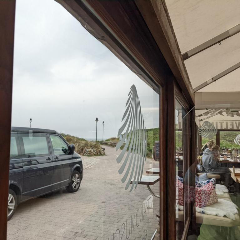 Wetter heute Wechselhaft ohne Sonne mit etwas Regen und 15 Grad. Am Abend soll dann die Sonne wieder rauskommen. Mal sehen ob wir dann einen Sonnenuntergang vom Restaurant Strandmuschel aus beobachten können. Das Restaurant ist recht teuer. Man bezahlt halt die Lage mit. Das Essen war ganz ok aber nicht außergewöhnlich und dafür den Preis nicht wert, schon gar nicht die Lokation. Ist eher was für Junge Leute und nicht für Ü-60ger geeignet weil unbequem, zugig und sehr eng.
