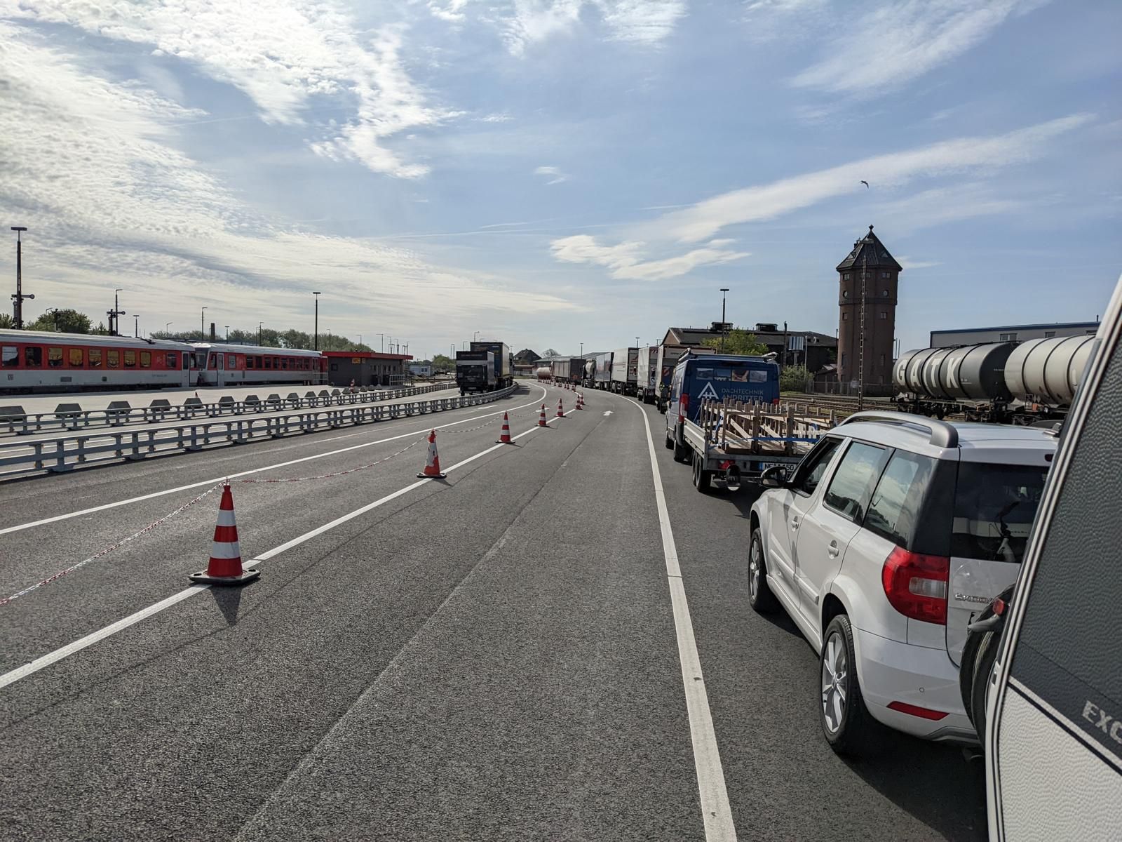 Nach dem wir recht früh aufgestanden sind und gefrühstückt haben, sind wir auch gleich aufgebrochen zur DB Sylt Shuttle Autoverladung in Niebüll. Da wir für die ca. 60 Km nur etwa 1,2 Stunden benötigt haben, waren wir ca. 2 Stunden vor der eigentlichen Abfahrt am Terminal und konnten gleich, da nix los war in die Spur 2 (Online Reservierungen) einfahren.