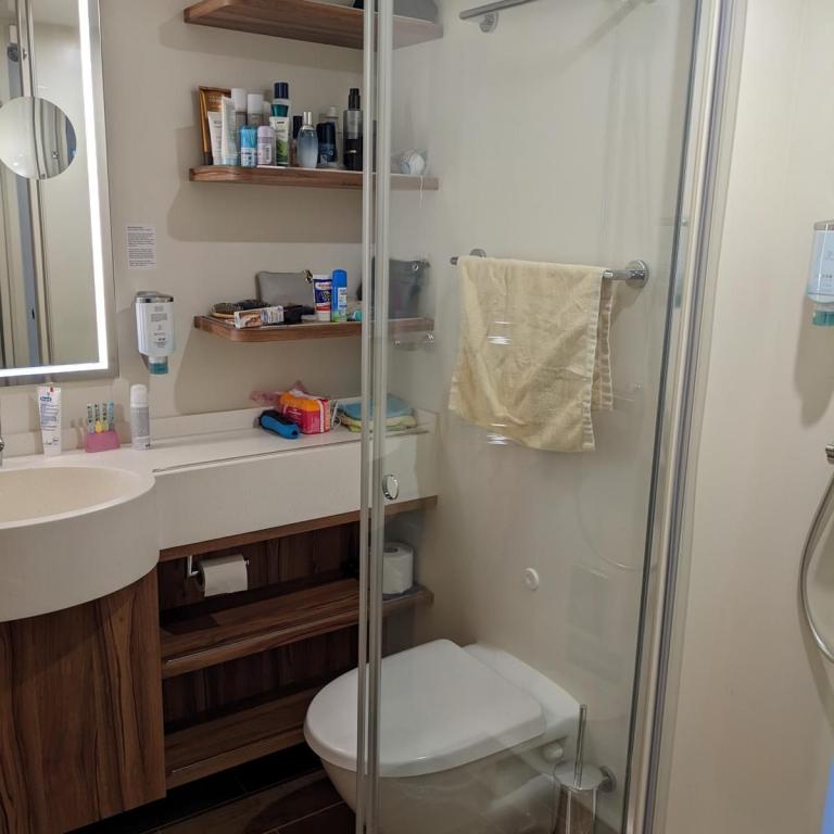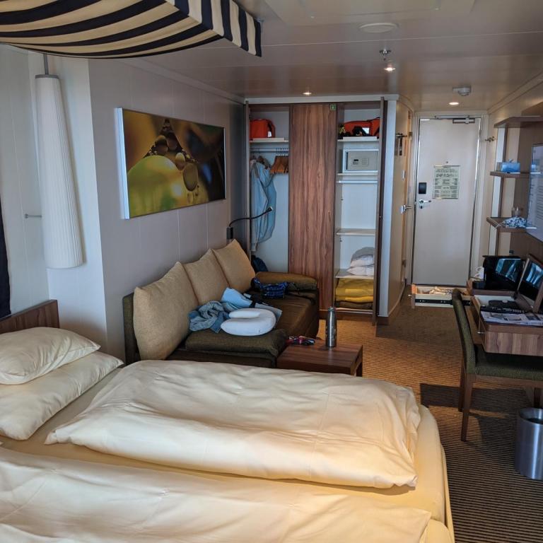 Unsere Kabine war recht groß aber leider nicht besonders sauber. Oben auf den Regalen im Bad als auch in der Kabine wurde wohl noch nie sauber gemacht. Dort befand sich eine dicke Staubschicht. Wer weis wie der Rest dann sauber gemacht wird. In Corona Zeiten nicht sehr vertrauenswürdig.