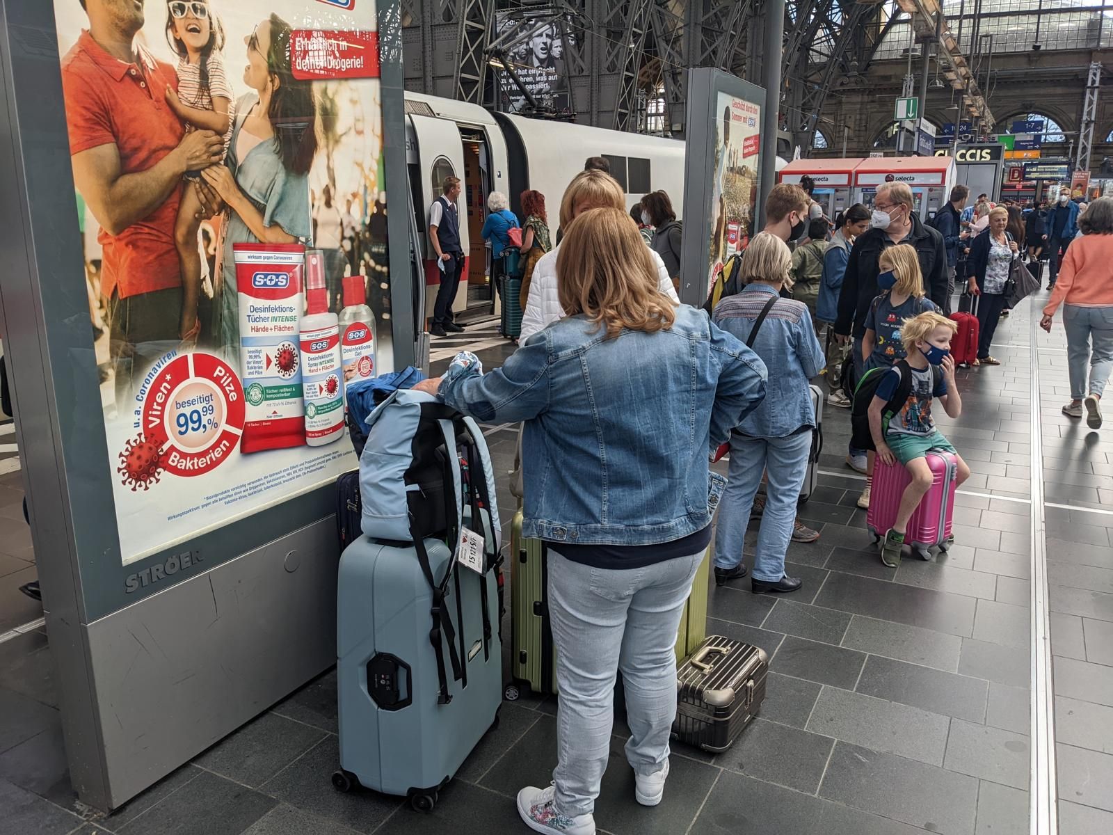 Heute war frühes Aufstehen angesagt. Wir wollten gegen 08:30 Uhr mit der S-Bahn nach Frankfurt Hbf Fahren. Unser ICE nach Hamburg ging gegen kurz vor 10:00 Uhr. Mit unseren Freunden haben wir uns dann am Abfahrtsgleis im Hbf verabredet. Der ICE war recht pünktlich. Schnell haben wir unsere Plätze gefunden da fuhr der Zug auch schon ab. Leider hat man im ICE nur recht wenig Platz für schwere Koffer.