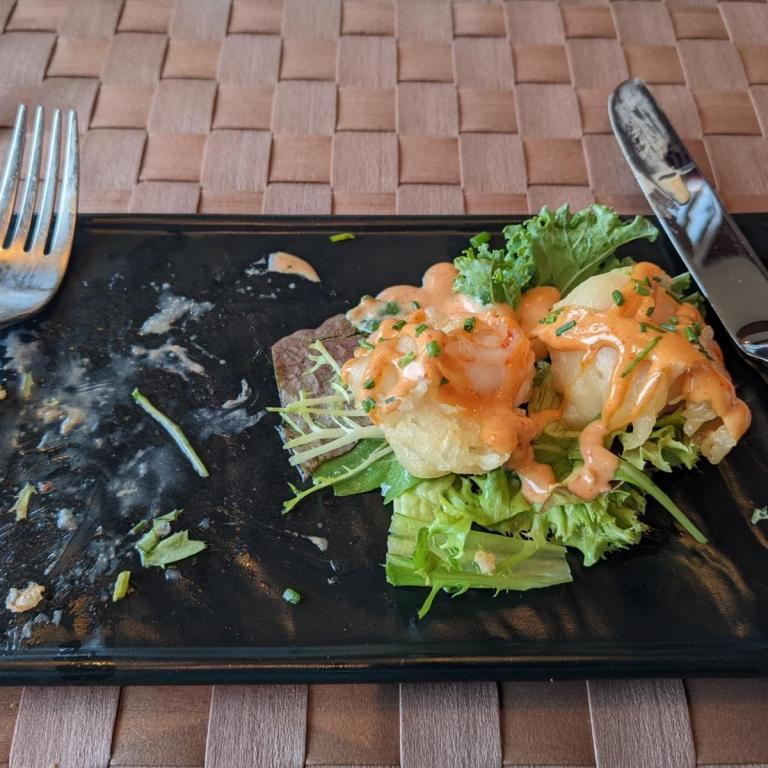 Gegen 12 Uhr ging es dann zurück zum Schiff. Hier gingen wir sogleich ins 6.OG zur Tapas Bar. Hier haben wir uns mit Tapas satt gegessen. Die waren wirklich lecker. Leider gibt es auf der AIDA keine Themenessen mit Spezialitäten vom besuchten Land oder Ort. Die Buffet Restaurants haben jeden Tag das gleiche langweilige lauwarme Essen. Leider gibt es hier nur in einer Eisbar etwas Kuchen (leider nur Tiefkühlware) als auch im French Kis ein paar aufgetaute Tartes. Das ist für ein so großes Schiff sehr enttäuschend.