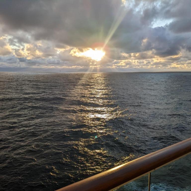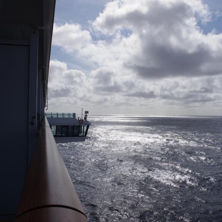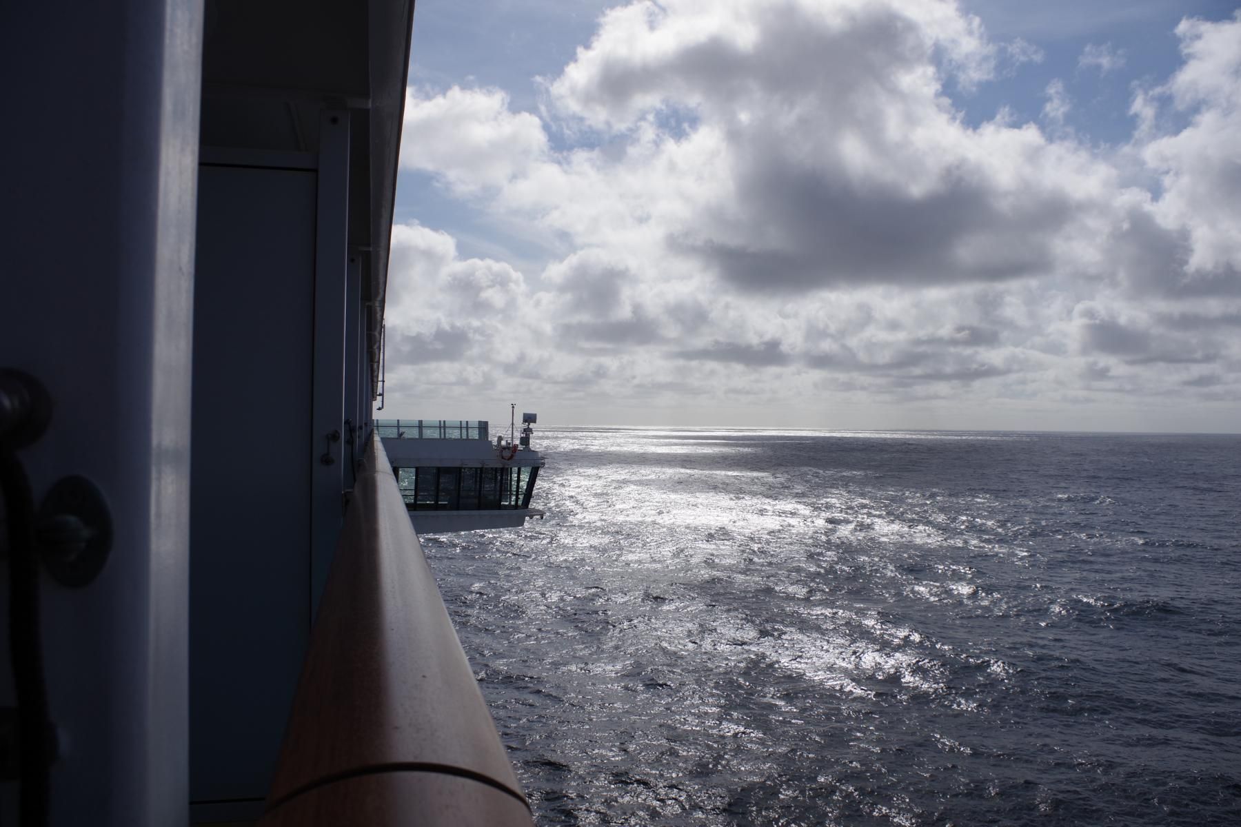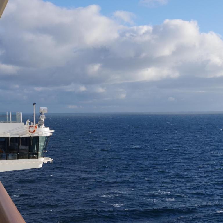 Wir hatten heute einen Seegang von ca. 3-4 Meter, aber Schiff lag recht ruhig. Das Frühstück ist essbar aber leider sind die Eier und Speck meist kalt. Die Brötchen sind ungenießbar weil aufgebacken. Das Brot kann man essen. Von der Qualität nicht mit Phönix zu vergleichen. Im 14. OG gibt es auch ein Restaurant mit Fensterplätzen. Da ist es zum Frühstücken manchmal etwas besser als im 6. oder 7. OG. zumal wir ja unsere Zimmer im 15. OG haben. Heute Abend können wir uns die ausgedruckten Bilder vom Check in abholen. Das bezahlte und versprochene Internet funktioniert hier auf dem Schiff gar nicht.