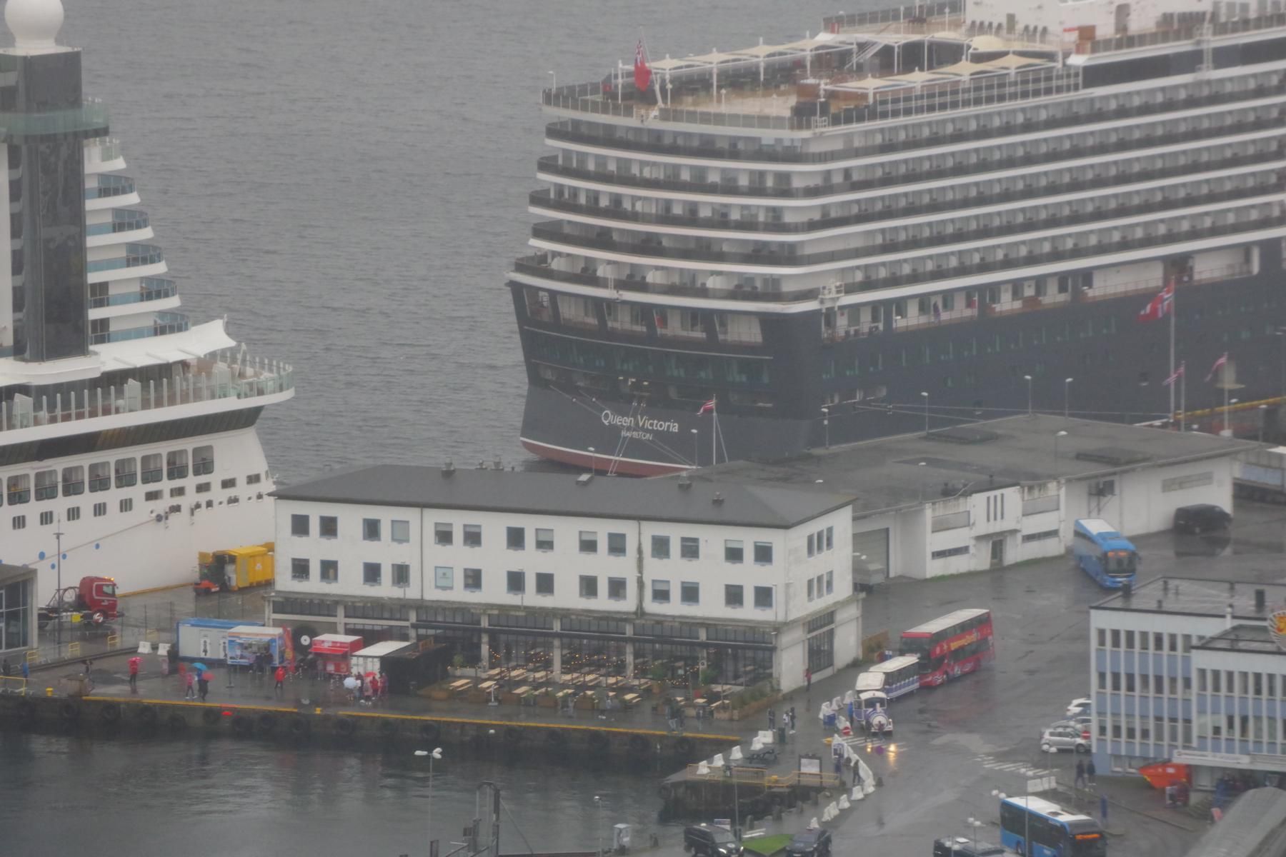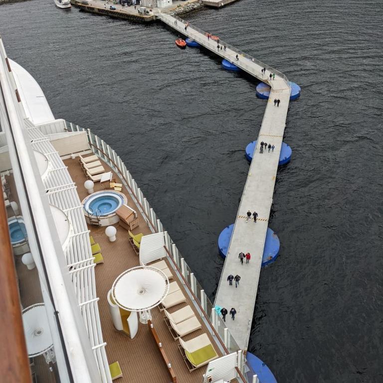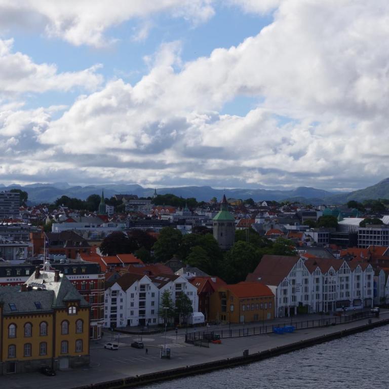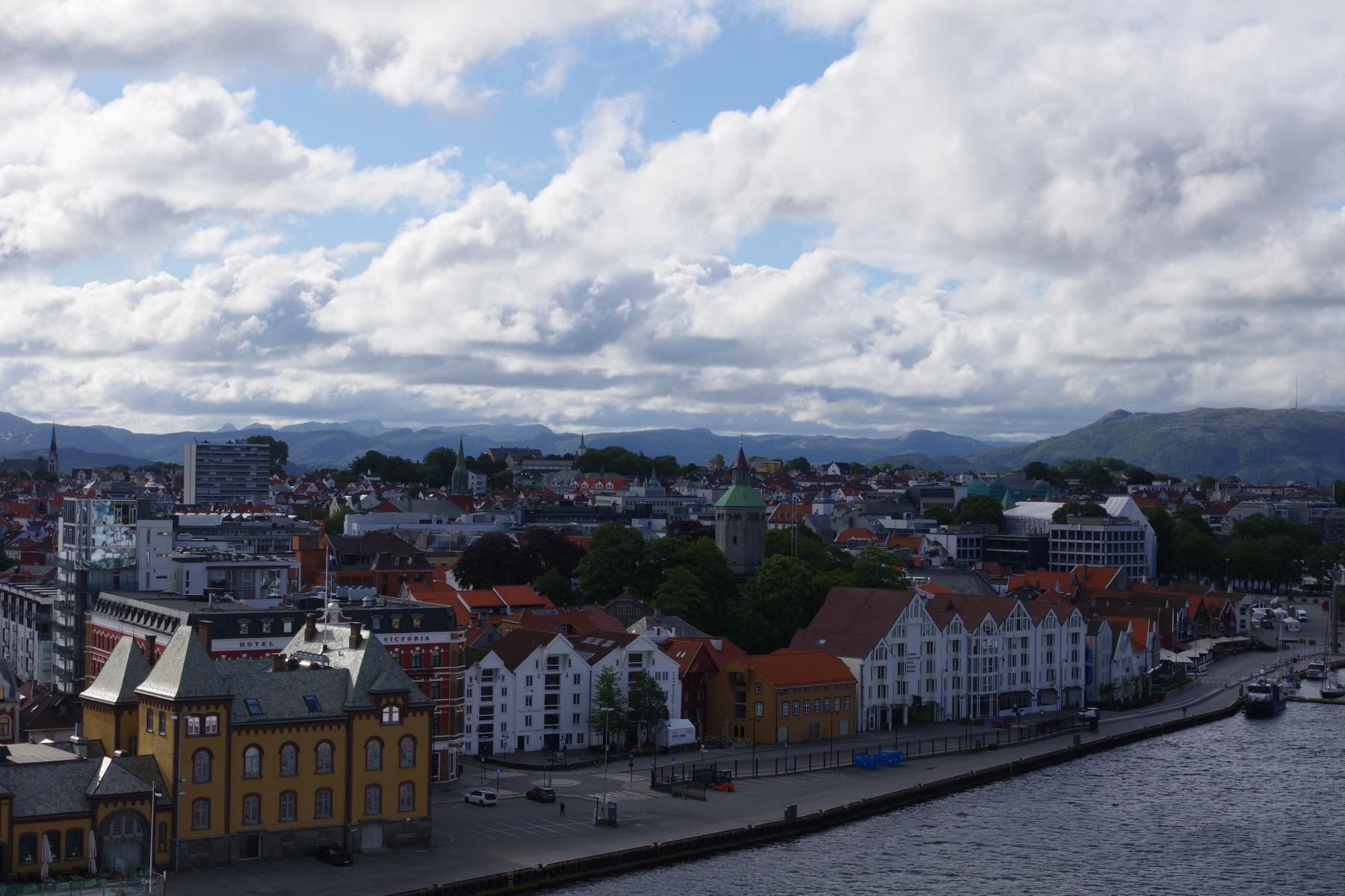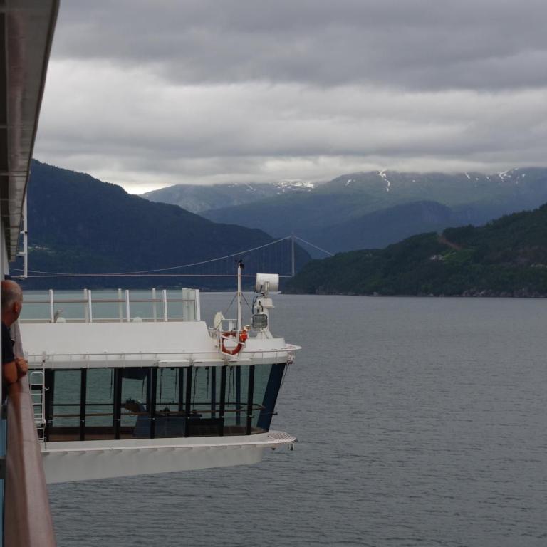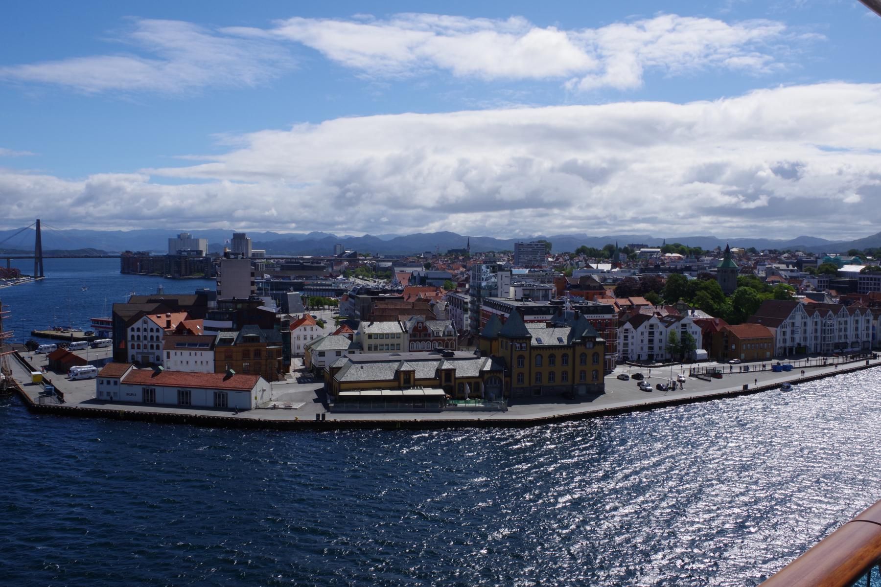 Gegen 9 Uhr legten wir in Stavanger an. Das Wetter war leicht bewölkt und um 15 Grad. Eine wunderschöne Altstadt direkt am Anleger. Der Ausflug zu den Wikingerausgrabungen war sehr leerreich. Weiter ging es dann zum Denkmal für die Schlacht am Hafrsfjord von 872, bestehend aus 3 10 m hohen Schwertern von 1983. Auch die Stadtrundfahrt war gut. Interessant ist ein Tunnel mit einem Kreisverkehr in der Mitte. Leider ist das Chaos mit der IT auf dem Schiff nicht besser geworden. Das TV ging bis zum Reiseende fast gar nicht mehr.