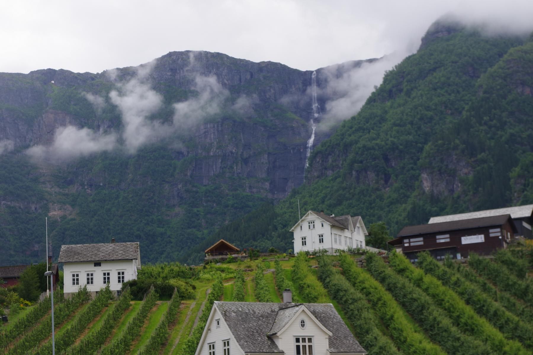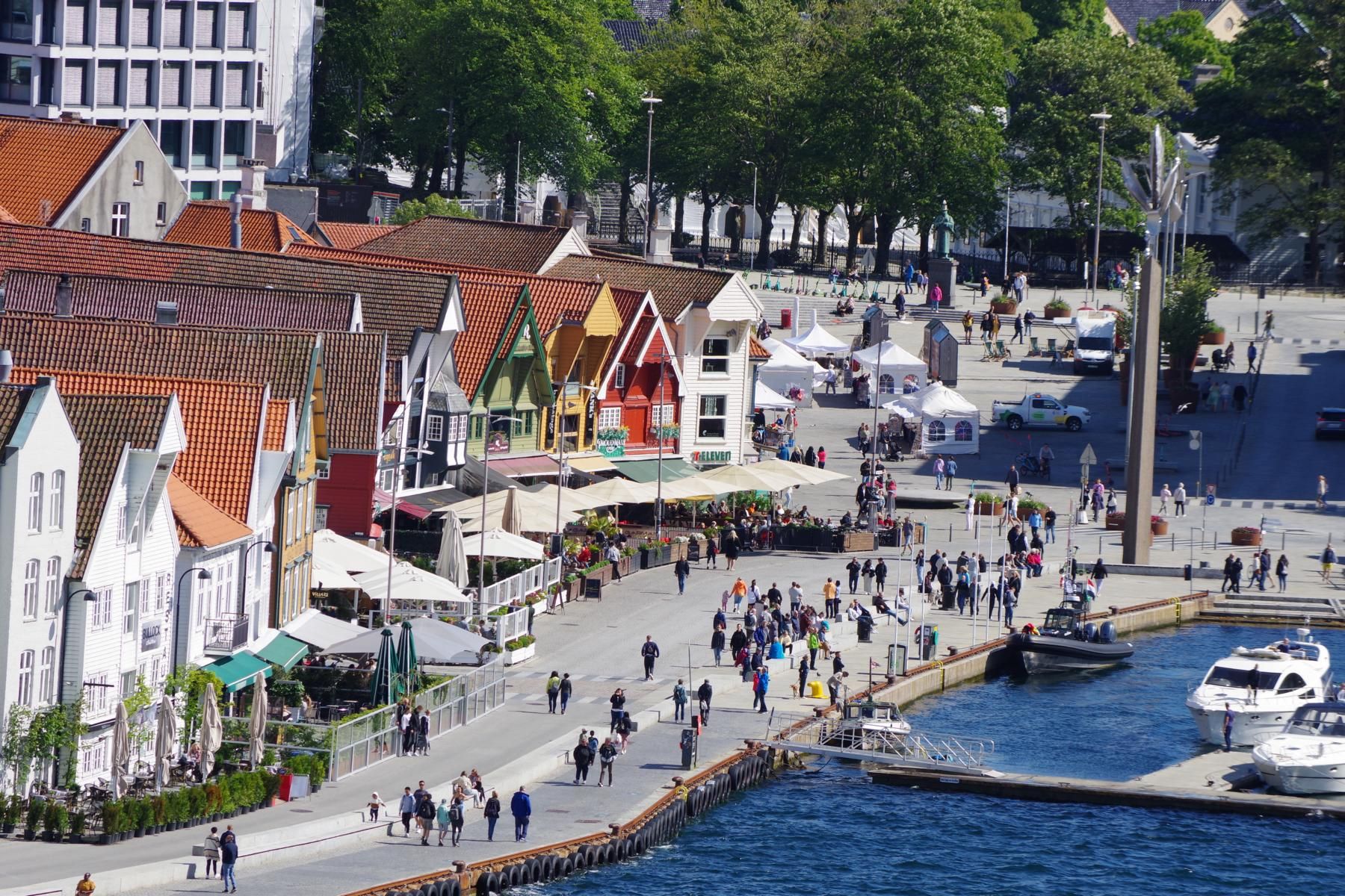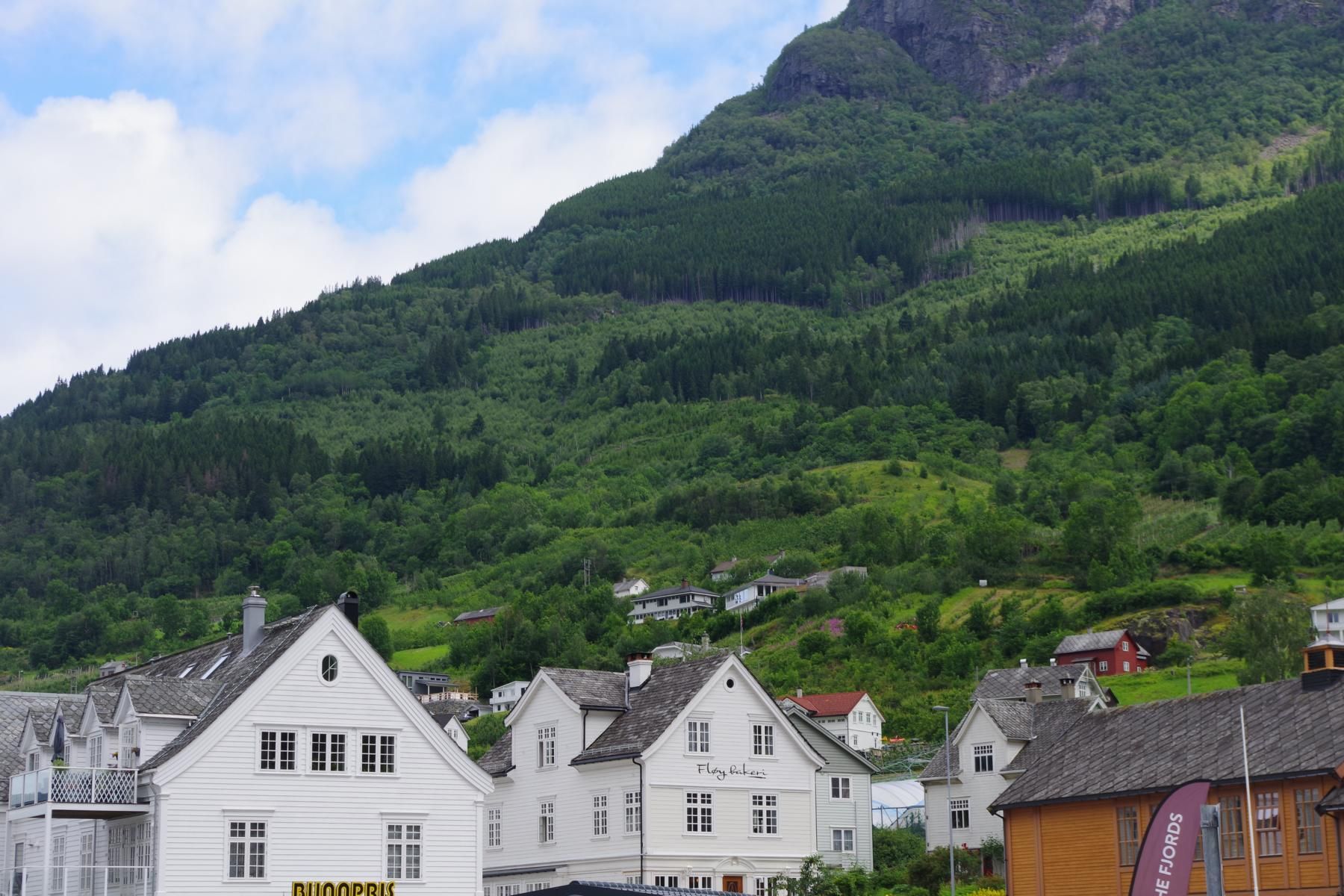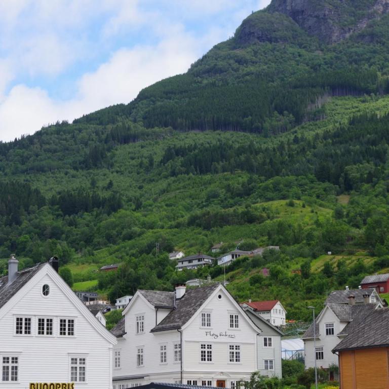 Als das Schiff gegen 14 Uhr wieder ausgelaufen ist, kam die Sonne raus. Man hätte besser die Reise mit einem längeren Aufenthalt in Alesund planen sollen. Die schöne Altstadt nur 10 Minuten Fußweg vom Schiff wäre es wert gewesen. Jetzt sind wir ca. 550 Km unterwegs bis zum nächsten Halt in Eidfjord.