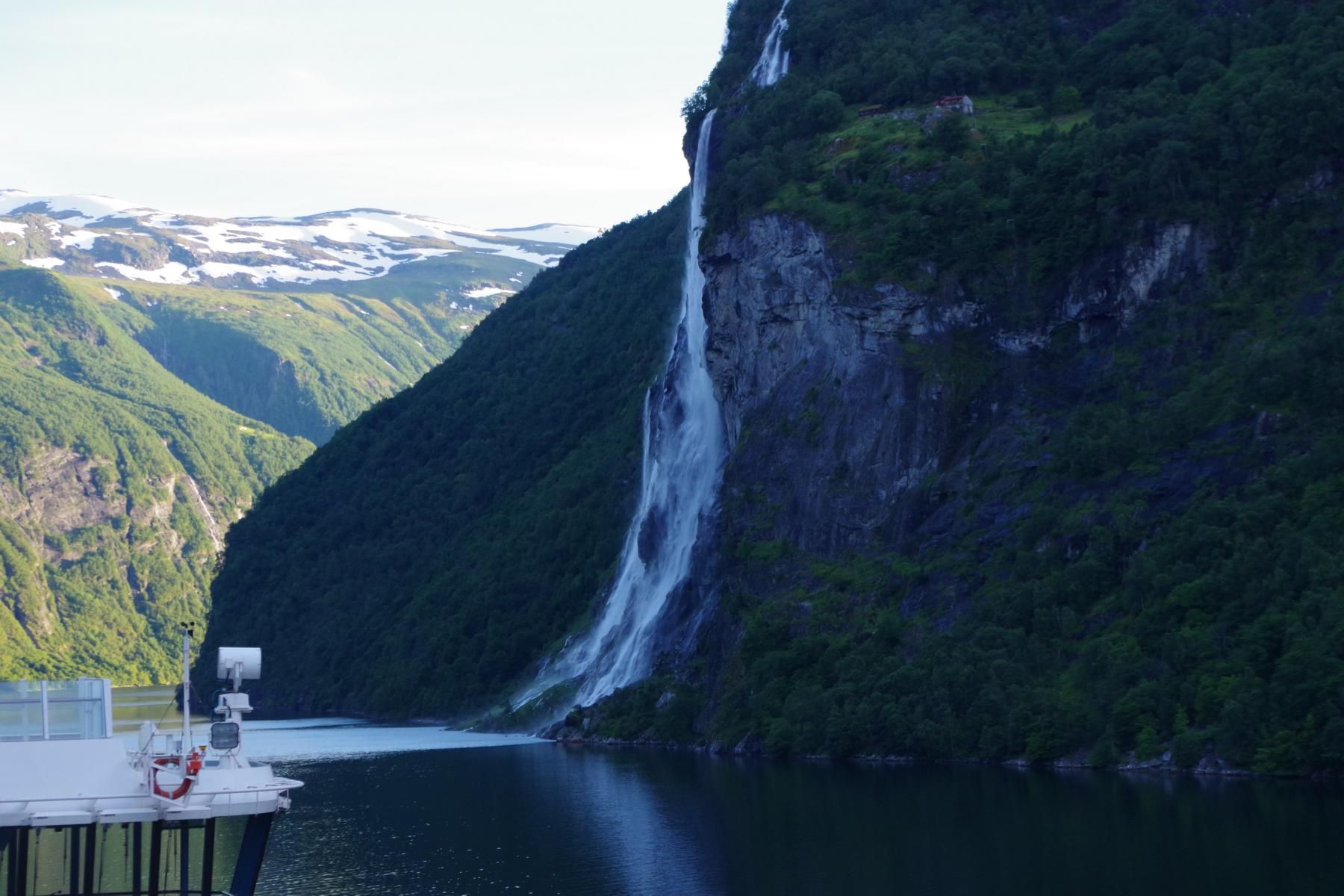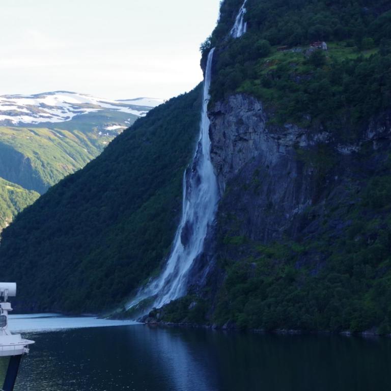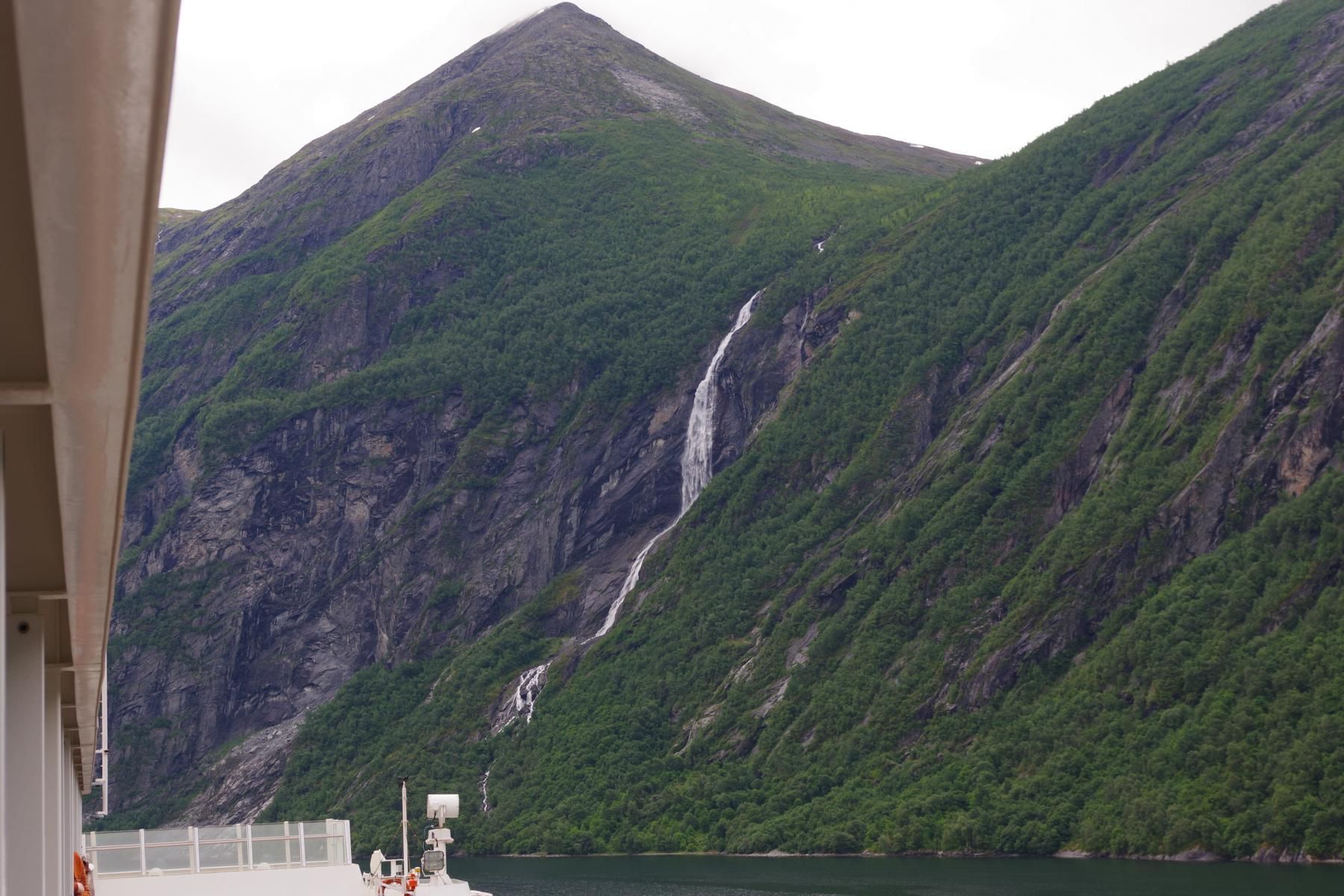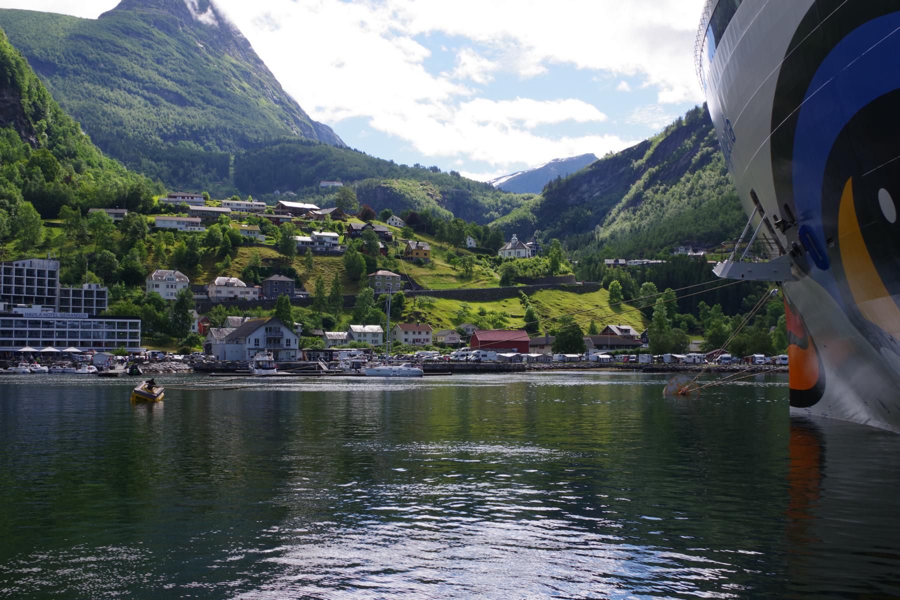 Nach der Fahrt durch den Sunnylvs Fjord machten wir einen kurzen Halt in Hellesylt um dort ein paar Passagiere abzusetzen welche dann einen Ausflug mit dem Bus nach Geiranger gebucht haben. Anschließend fuhr das Schiff weiter durch den Geiranger Fjord nach Geiranger.