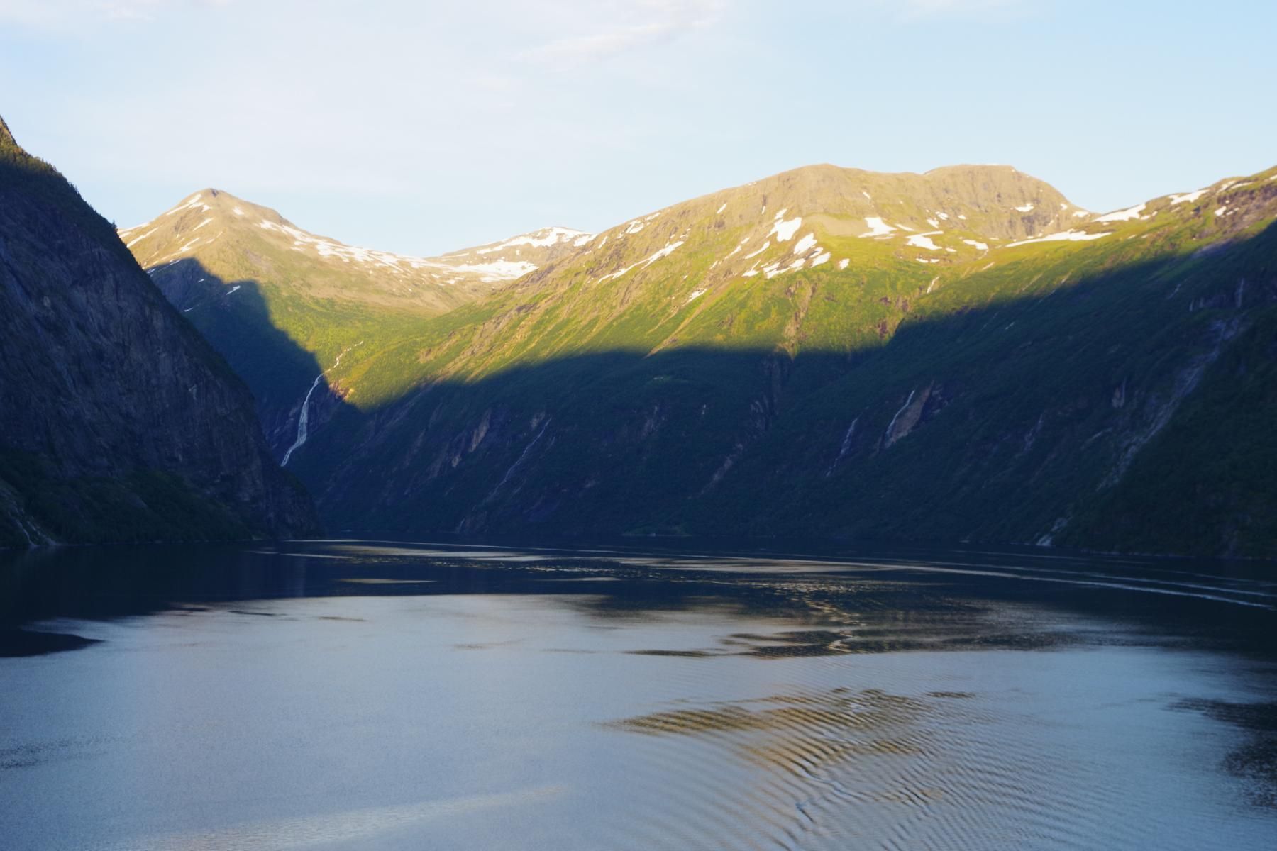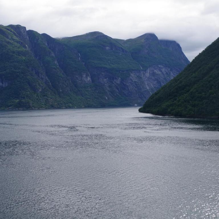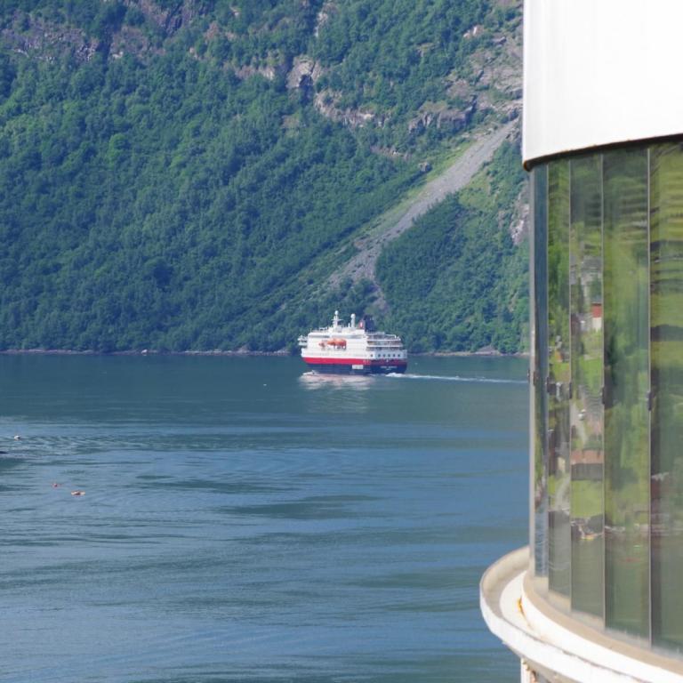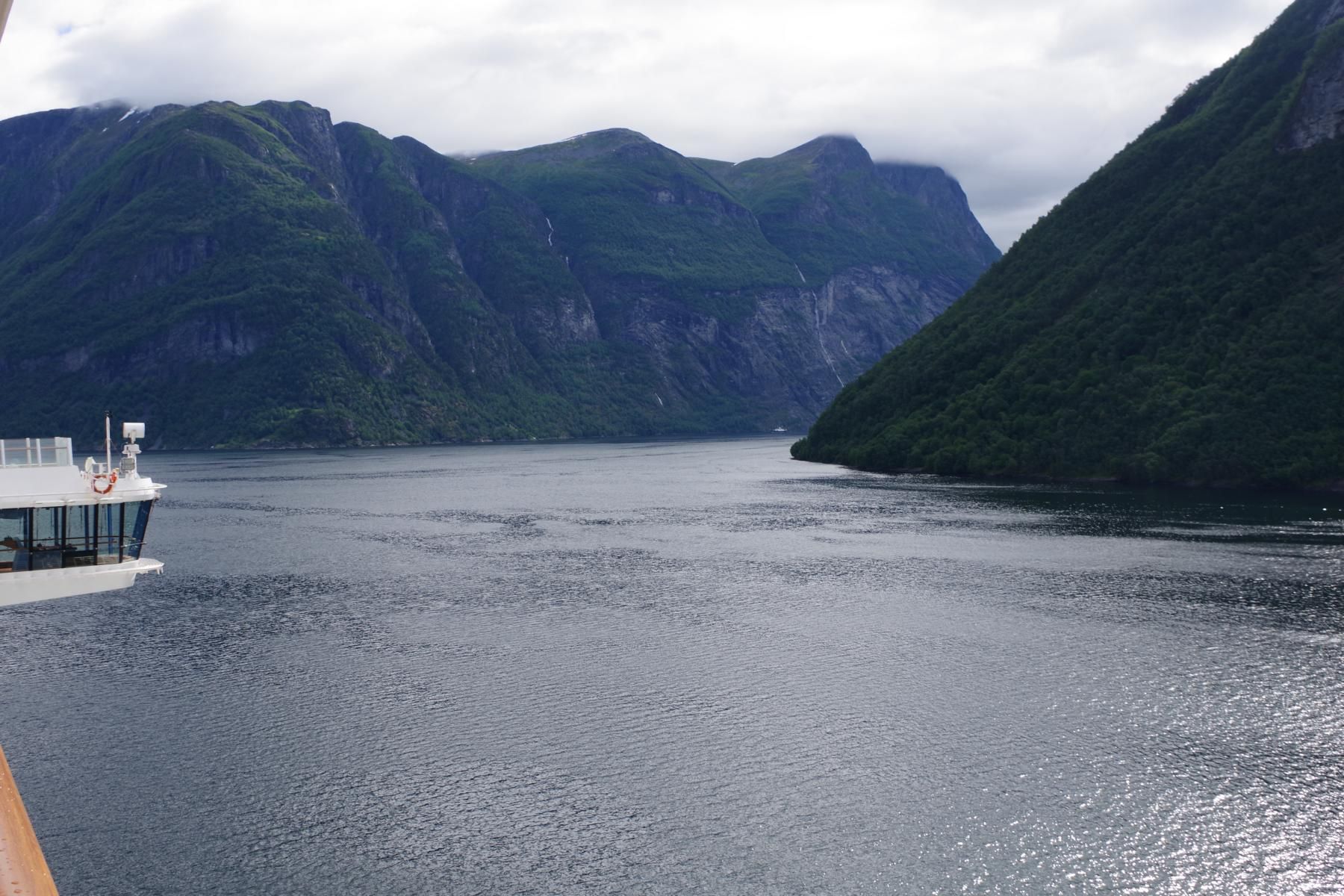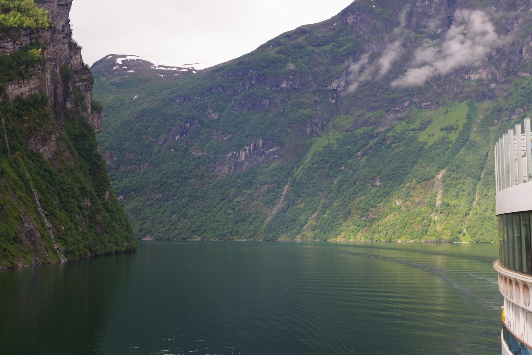 Nach der Fahrt durch den Sunnylvs Fjord machten wir einen kurzen Halt in Hellesylt um dort ein paar Passagiere abzusetzen welche dann einen Ausflug mit dem Bus nach Geiranger gebucht haben. Anschließend fuhr das Schiff weiter durch den Geiranger Fjord nach Geiranger.