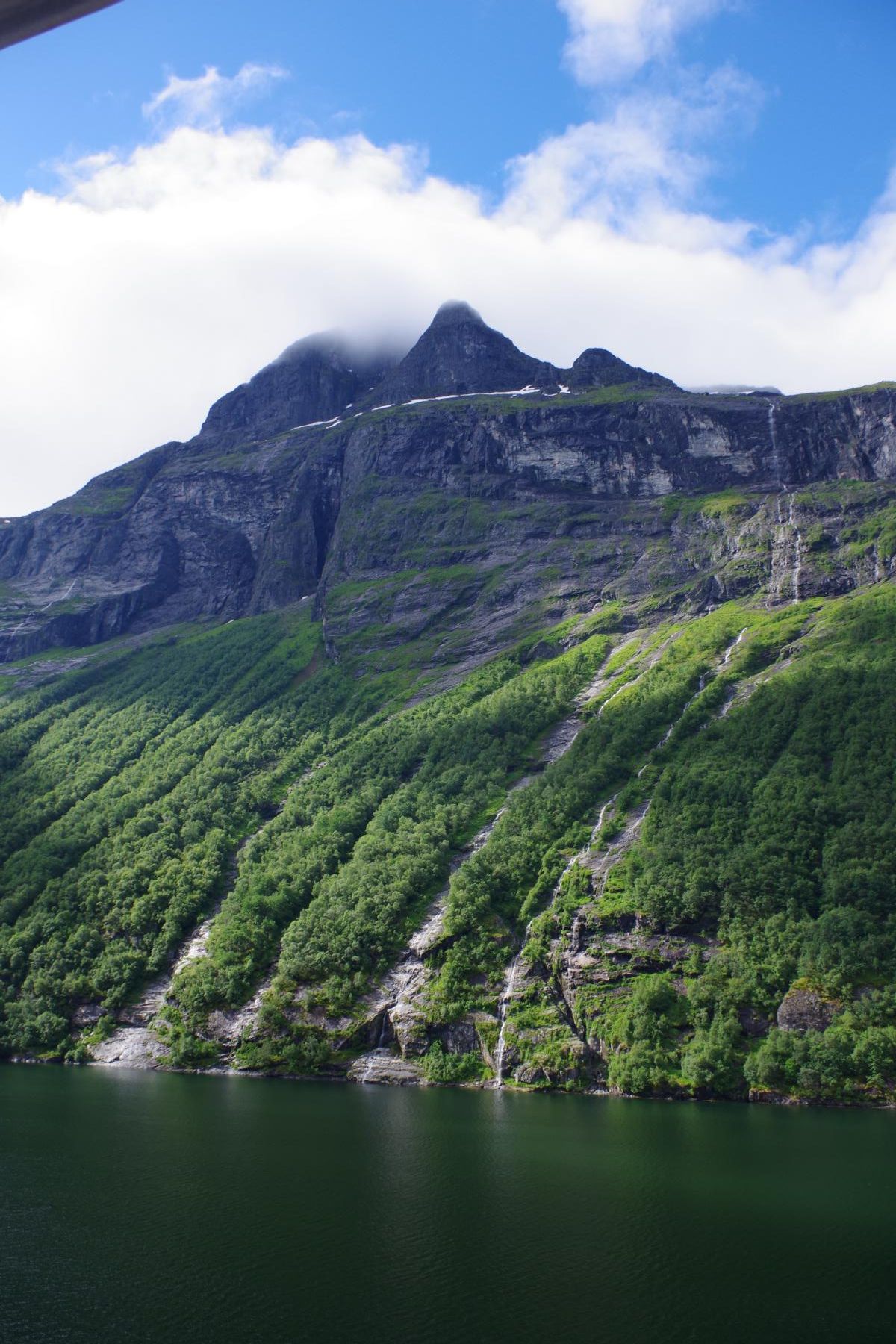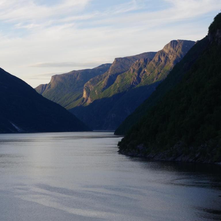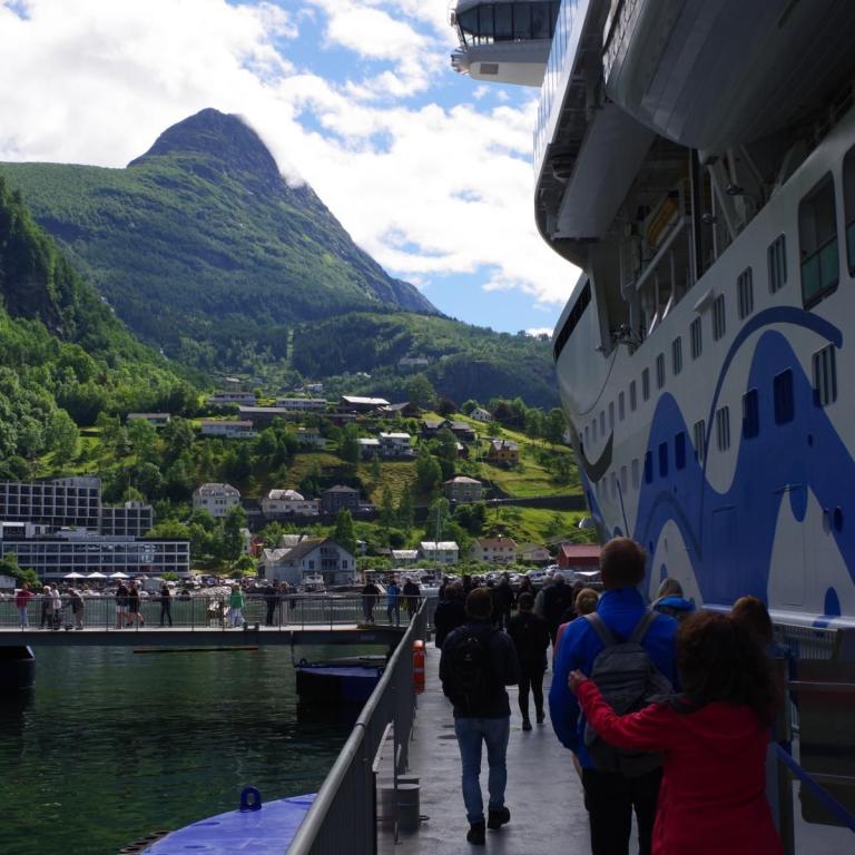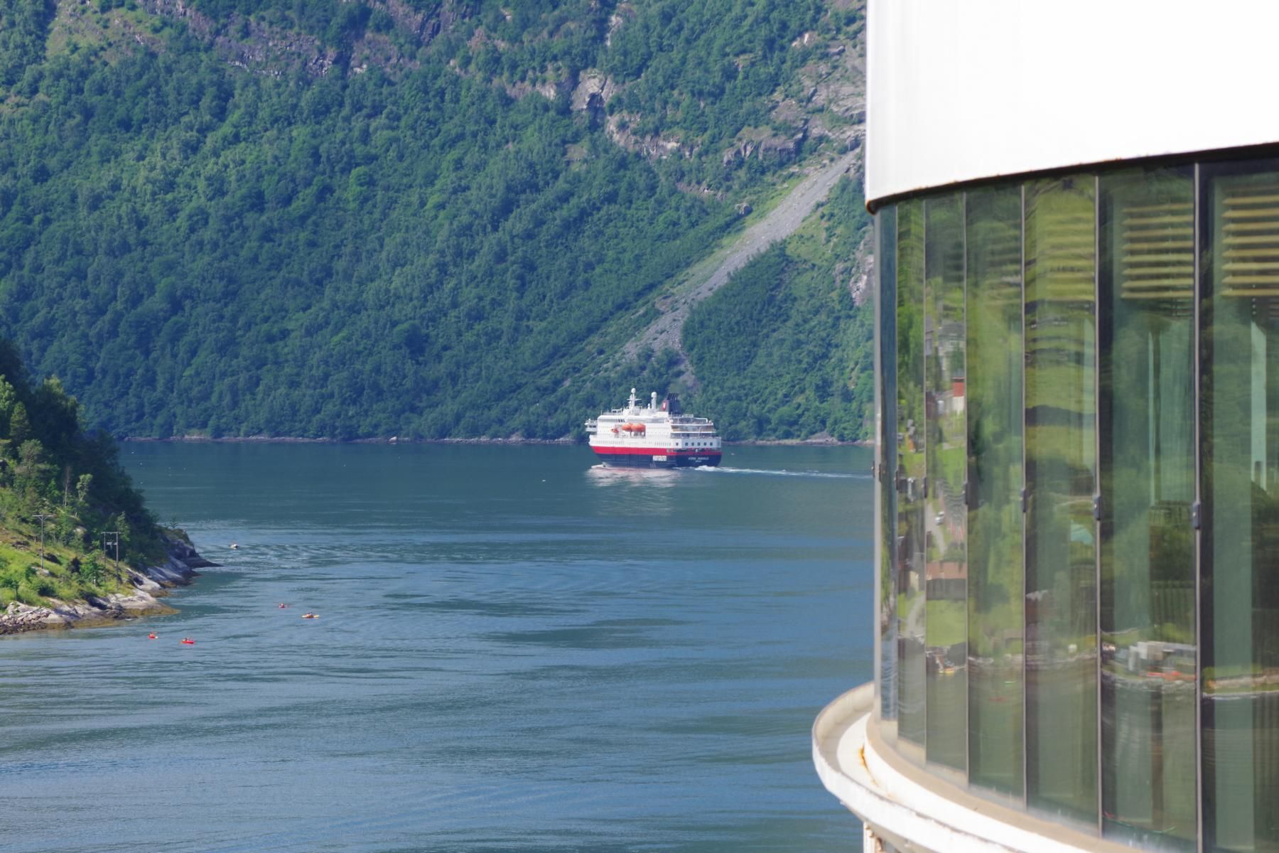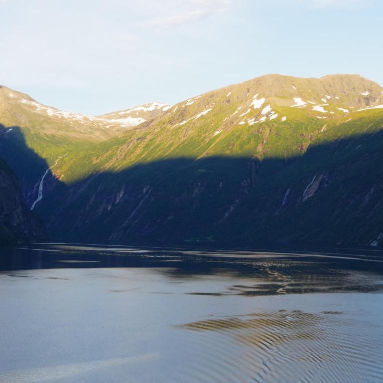 Nach der Fahrt durch den Sunnylvs Fjord machten wir einen kurzen Halt in Hellesylt um dort ein paar Passagiere abzusetzen welche dann einen Ausflug mit dem Bus nach Geiranger gebucht haben. Anschließend fuhr das Schiff weiter durch den Geiranger Fjord nach Geiranger.