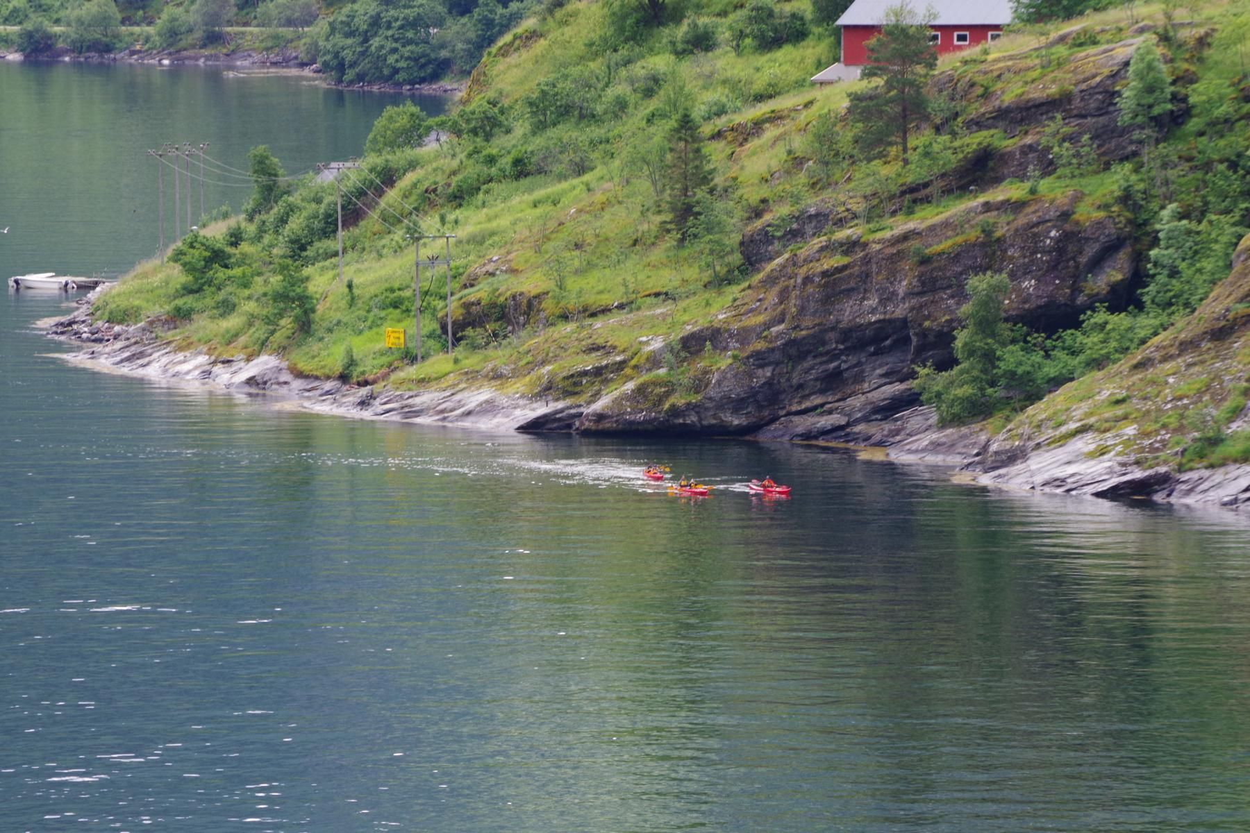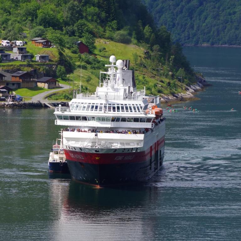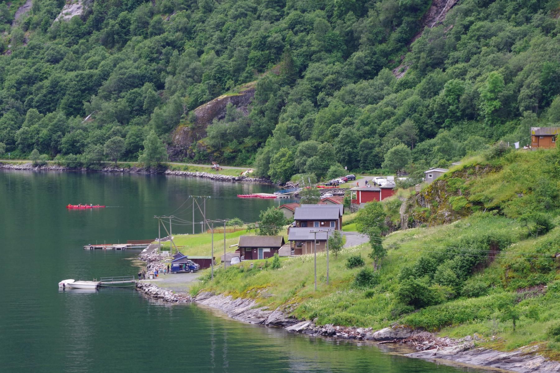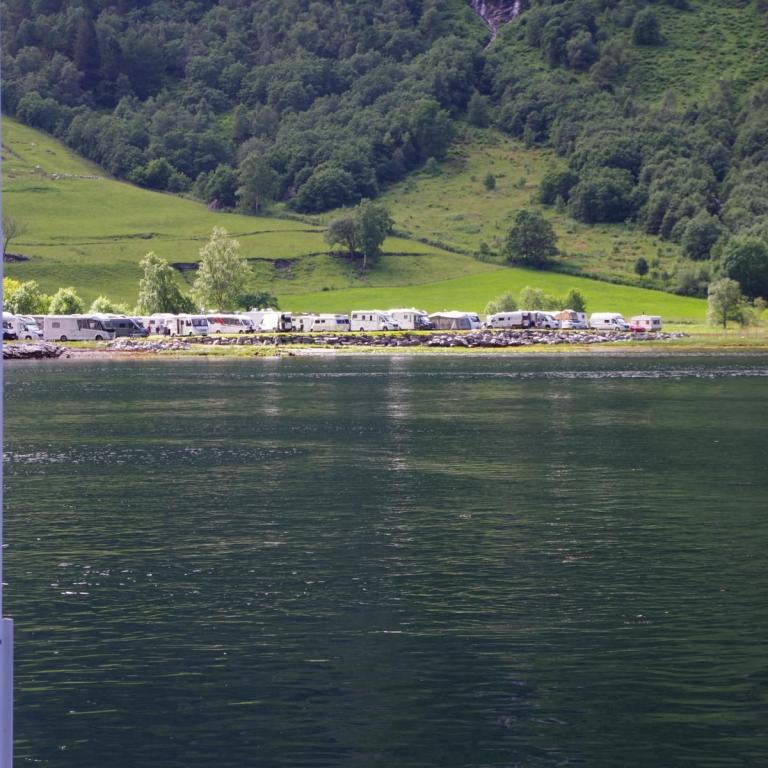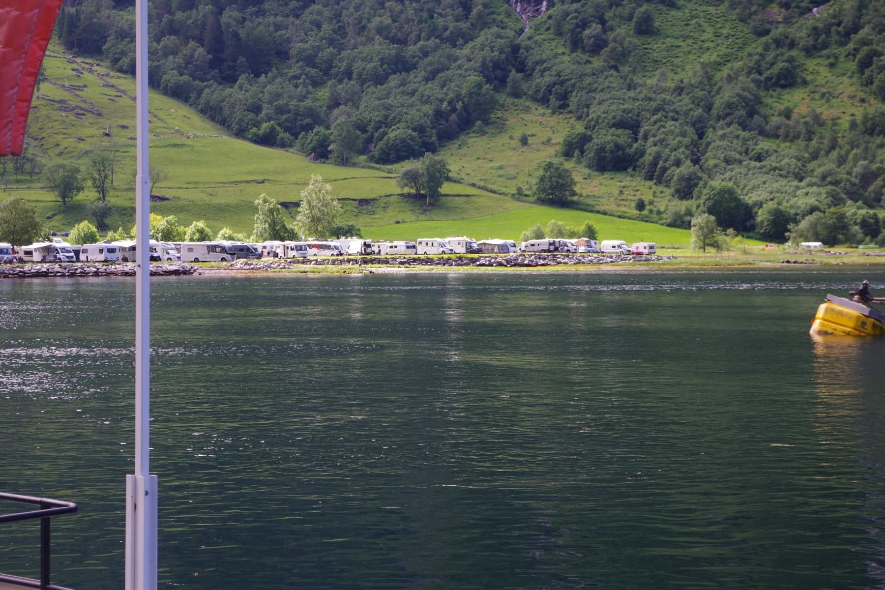 Mit dem Schiff durch den Geiranger ist bei Sonnenschein einfach einmalig schön. Als wir hier vor 23 Jahren mit dem Wohnmobil unterwegs waren, war hier kaum ein anderes Wohnmobil unterwegs und es gab auch nicht den großen Stellplatz in Geiranger. Hier ist alles auf Massentourismus ausgelegt. Den kleinen Campingplatz am Ausgang der Adlerkehre mit dem kleinen Hotel, gibt es aber immer noch.