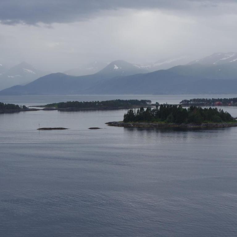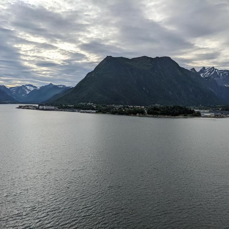 Heute sind wir um 08:00 Uhr bei strömenden Regen in Alesund angekommen. Einzigartig in Norwegen ist Alesunds wundervolle Jugenstilarchitektur. Nach einem Großbrand im Jahr 1904 wurde die Stadt fast vollständig wieder aufgebaut. Unser Ausflug startete um 10:30 Uhr ebenfalls bei Regen. Leider konnte man deshalb bei dem schönen Aussichtspunkt über Alesund, wegen des Windes und Regens, kaum Bilder machen. Beim Besuch der kleinen Kirche aus dem 11. Jahrhundert wurde der Regen weniger. Den Ausflug hätte man sich auch sparen können. Besser wäre es gewesen einen Rundgang durch die schöne Altstadt zu machen. Zurück an Bord gegen 13 Uhr sind wir noch mal in die Tapasbar gegangen und anschließend in die Eisbar zum Dessert.