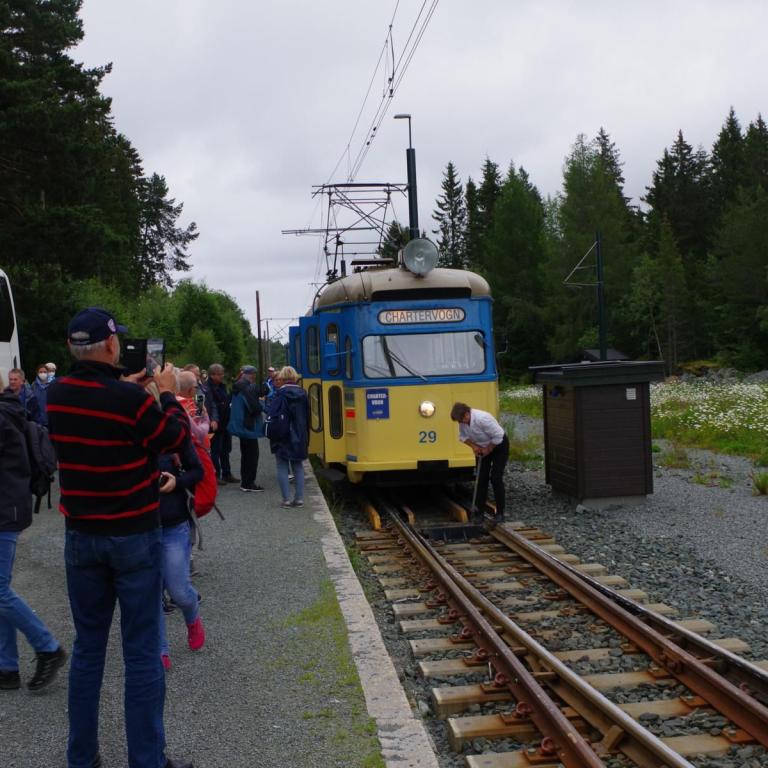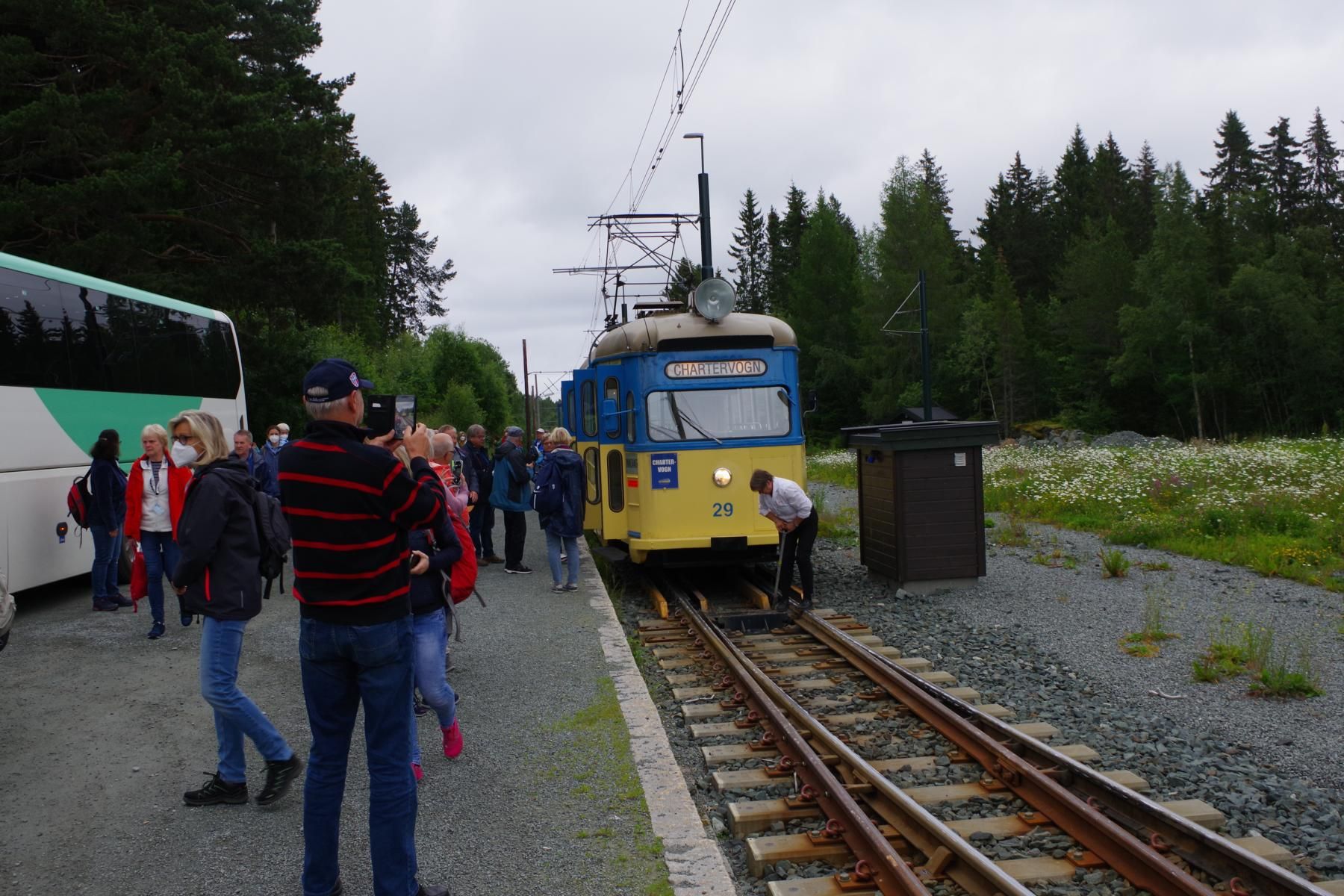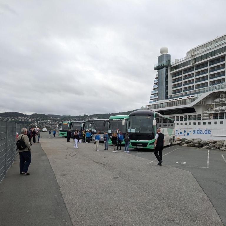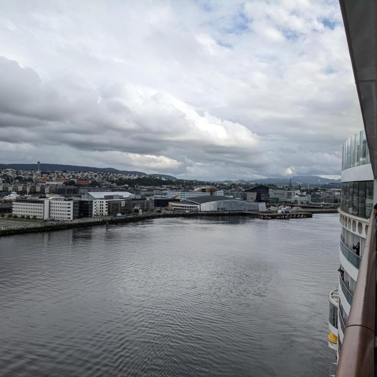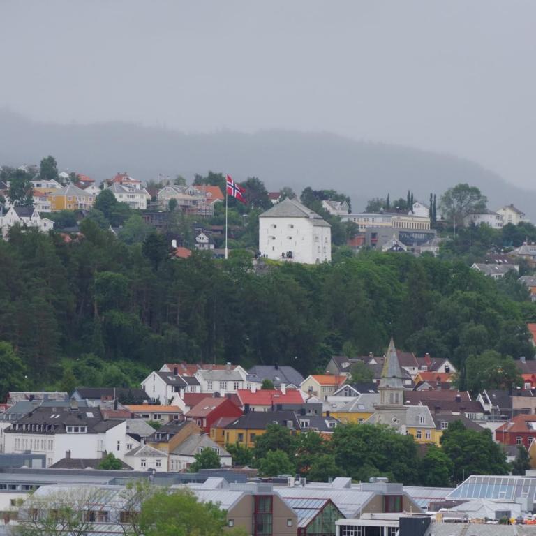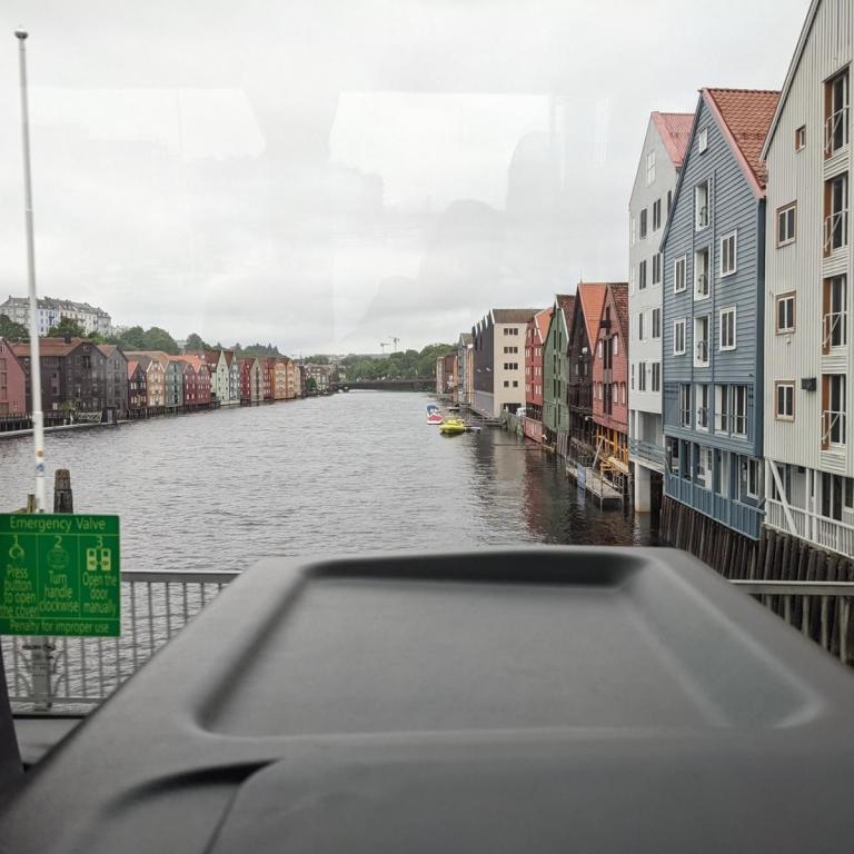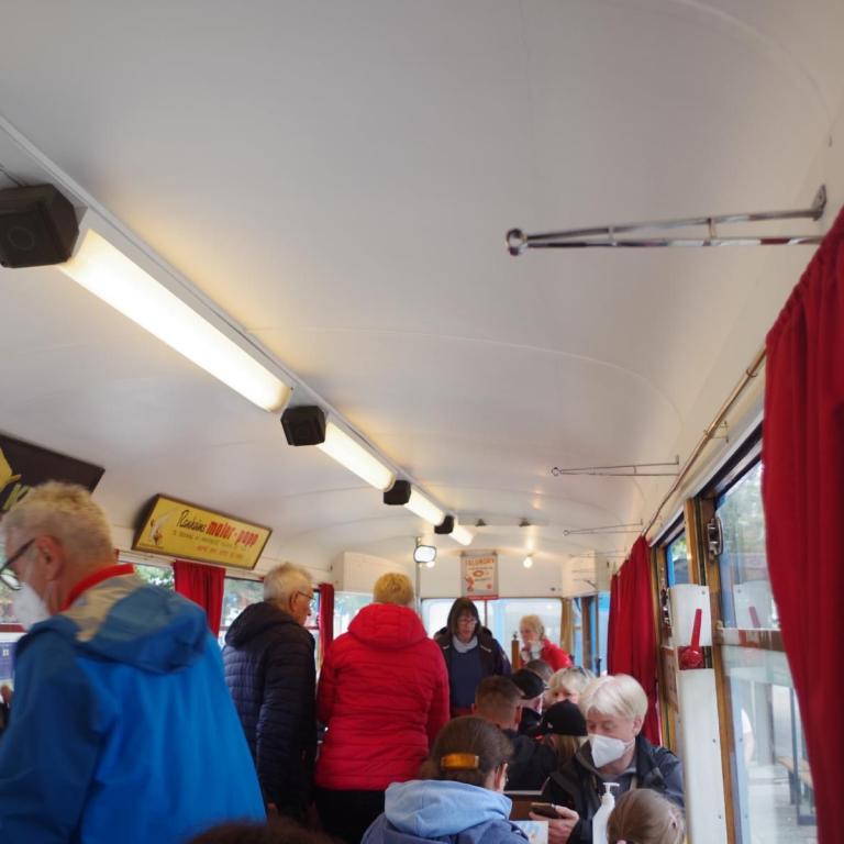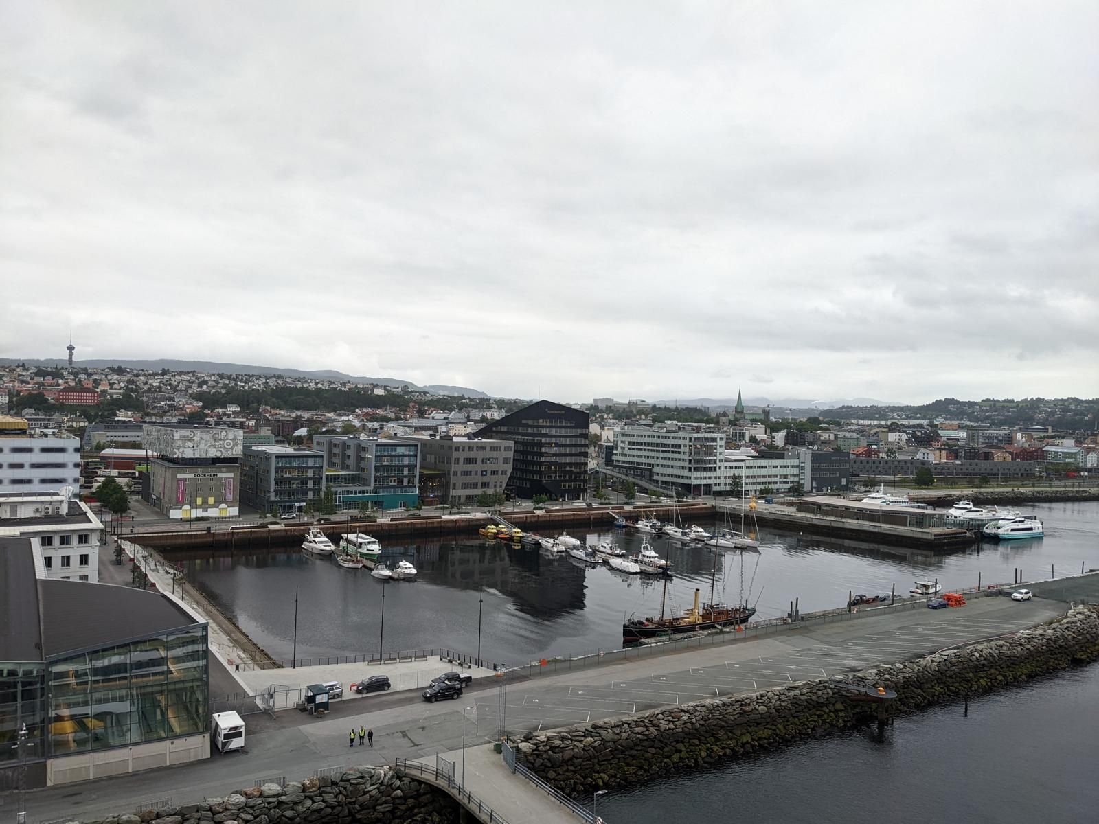 Gegen 07:30 Uhr legten wir in Trondheim an. Das Wetter war ganz ok. Stark bewölkt aber kein Regen. Ideal für einen Ausflug. Um 10 Uhr gings mit dem Bus zur Tramstation. Dort stiegen wir dann in eine historische Tram um. Die Tram wurde trotz Corona mit Gästen vollgestopft, Abstand halten war unmöglich und alle hatten keine Maske auf. Damit fuhren wir dann auf 200 Meter um dort wieder in den Bus umzusteigen. Alles war etwas Chaotisch. Dann ging es mit dem Bus kreuz und quer durch Trondheim mit einigen Fotostopps.