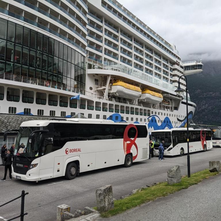 Gegen 09:30 sind wir in den Nordfjord eingelaufen und gegen 12 Uhr erreichten wir dann Nordfjordeid am Ende des Fjords. Eine wirklich wunderschöne fahrt bei immer besserem Wetter mit viel Sonne und ca. 18 Grad. Um 13:30 ging es dann zum Bus auf die Panoramafahrt rund um den Nordfjord bei bestem Sommerwetter.