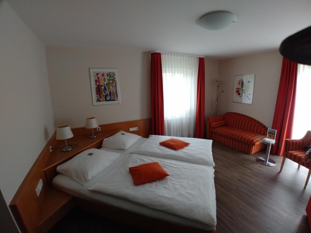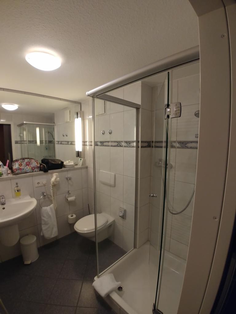 Dort haben wir in einem leckeren kleinen Cafe/Restaurant, Kuchen und Kaffee zu uns genommen. Das Zimmer im Hotel ist sehr sauber und recht geräumig. Die Matratzen der Betten sind leider viel zu hart und die Kopfkissen taugen nichts. Nachts ist es hier sehr leise. Das Frühstück ist Standard und kostet extra. Dafür ist der Zimmerpreis wirklich etwas zu teuer. Wir kommen dann eher nicht wieder her.