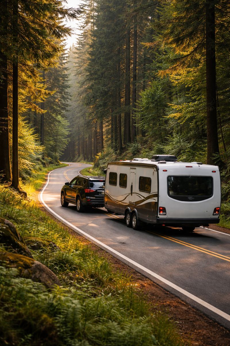 Prüfe vor der Abfahrt den Reifendruck und das Licht am Wohnwagen oder Wohnmobil.