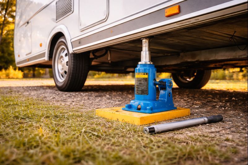 5. Ggf. Vorgang wiederholen, bis der Wohnwagen seitlich waagerecht steht.